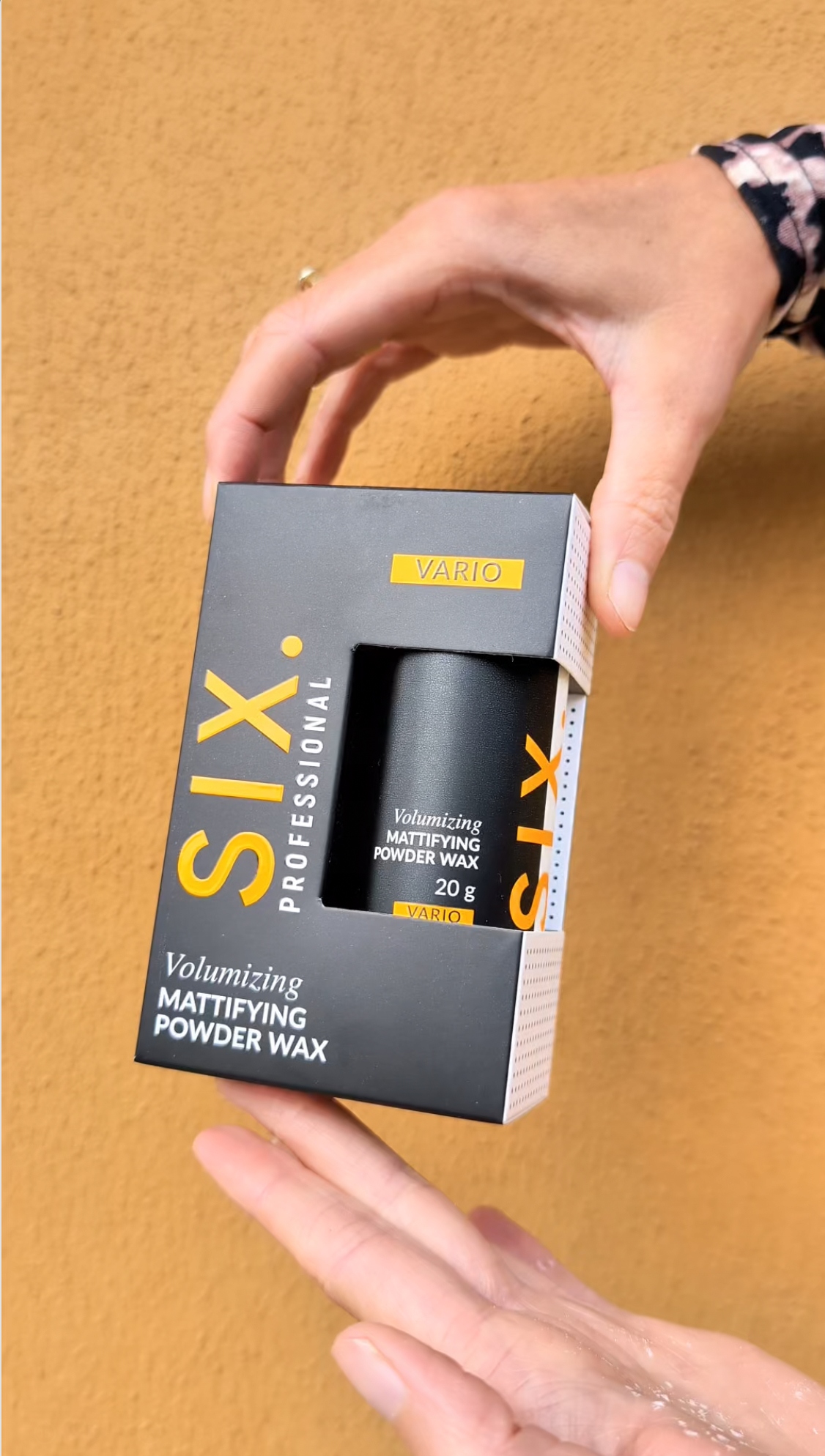Six Professional Volumizing Mattifying Powder Wax Vario 20 г — многофункциональная пудра для волос, которая приподнимает волосы у корней, придает им естественную матовую текстуру и обеспечивает длительную фиксацию прически.
