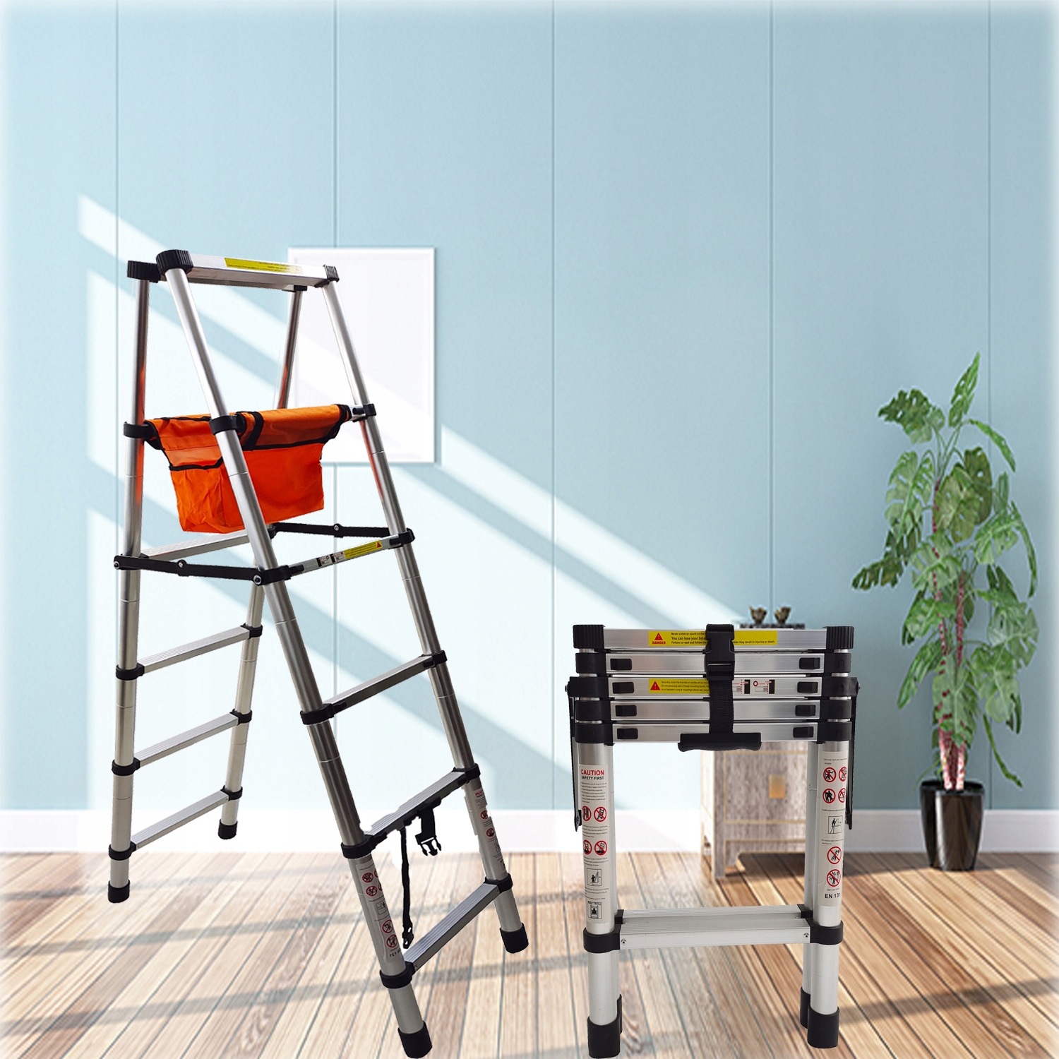 Большим недостатком алюминия является его легкость, он весит всего 8,5 кг, что упрощает его установку. Размер хранения: 62,5*0,43,5*12 см, фиксированный ремень хорошо удерживает часть педали, легко носить с собой, легко носить с собой. Эта сторона лестницы складывается и ее можно легко хранить в узких пространствах, а также в багажнике автомобиля, в шкафу или под диваном. Для тех, кто хочет легко перейти к использованию в коммунальных целях и хочет перейти к типу, который можно использовать на работе и дома, выберите алюминиевую телескопическую лестницу.