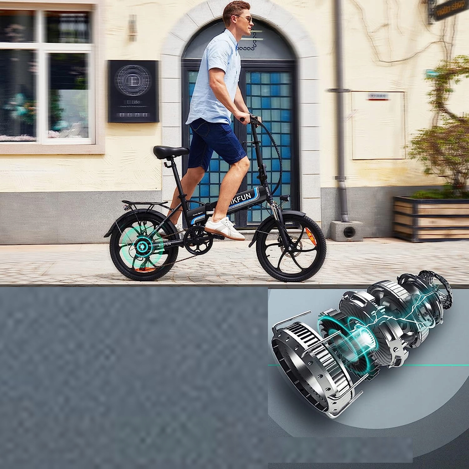 Электрический велосипед BIKFUN, складной 20-дюймовый электрический велосипед со съемной батареей 10 Ач/48 В, запас хода до 65 км, 250 Вт. Пригородный электрический велосипед для женщин и мужчин. Городской электрический велосипед, оснащенный передачей Shimano 7, скорость до 25 км/ч. Pedelc Складной велосипед