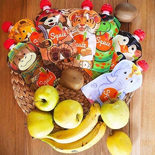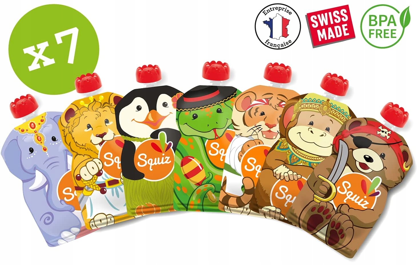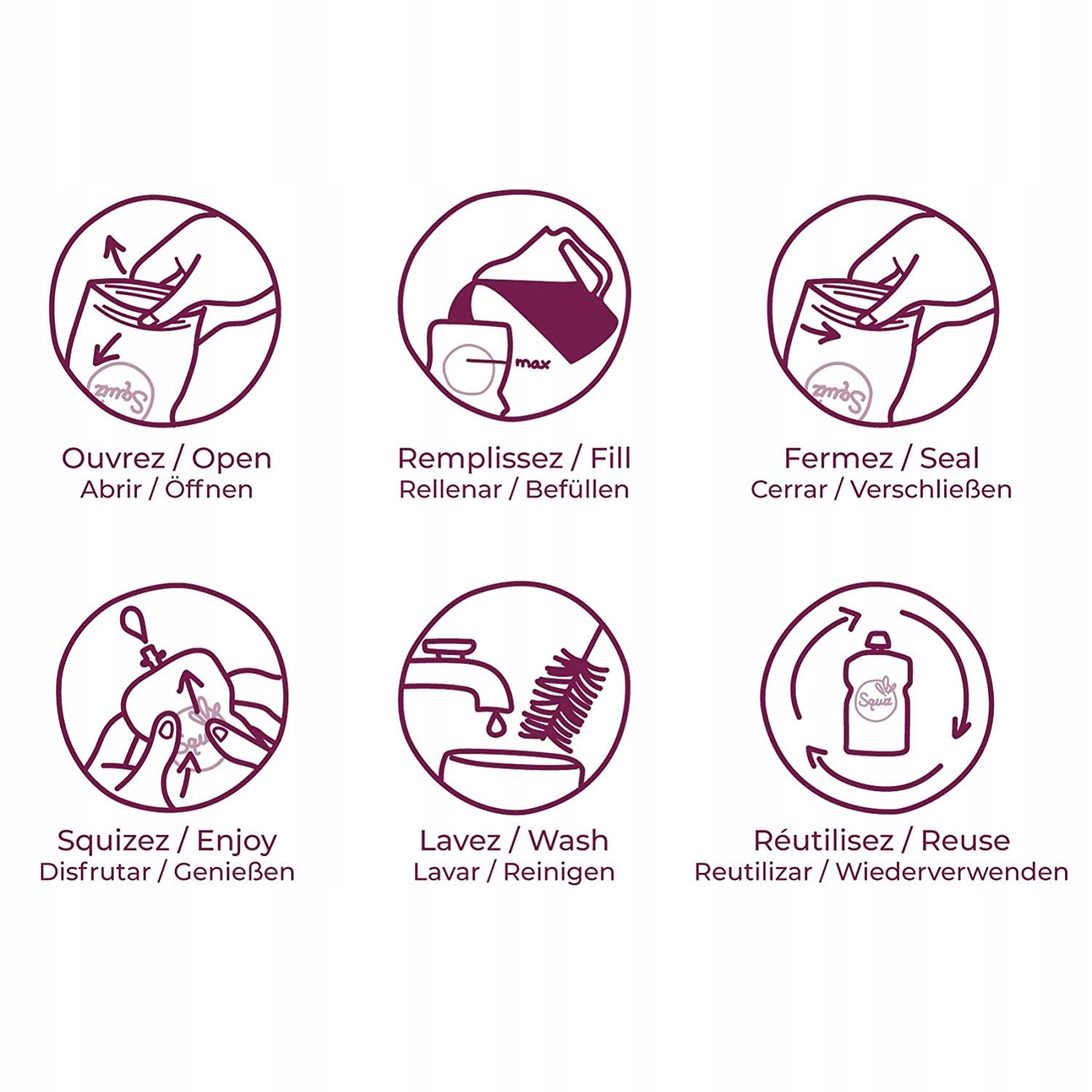 , каша для детей, йогурт или смузи, Squiz, подходящий для всего, что имеет консистенцию пасты. Используйте домашние продукты или контент из приобретенной коллективной упаковки, например, йогурт. Благодаря большому отверстию внизу трубка можно легко заполнить ложкой или непосредственно от миксера.