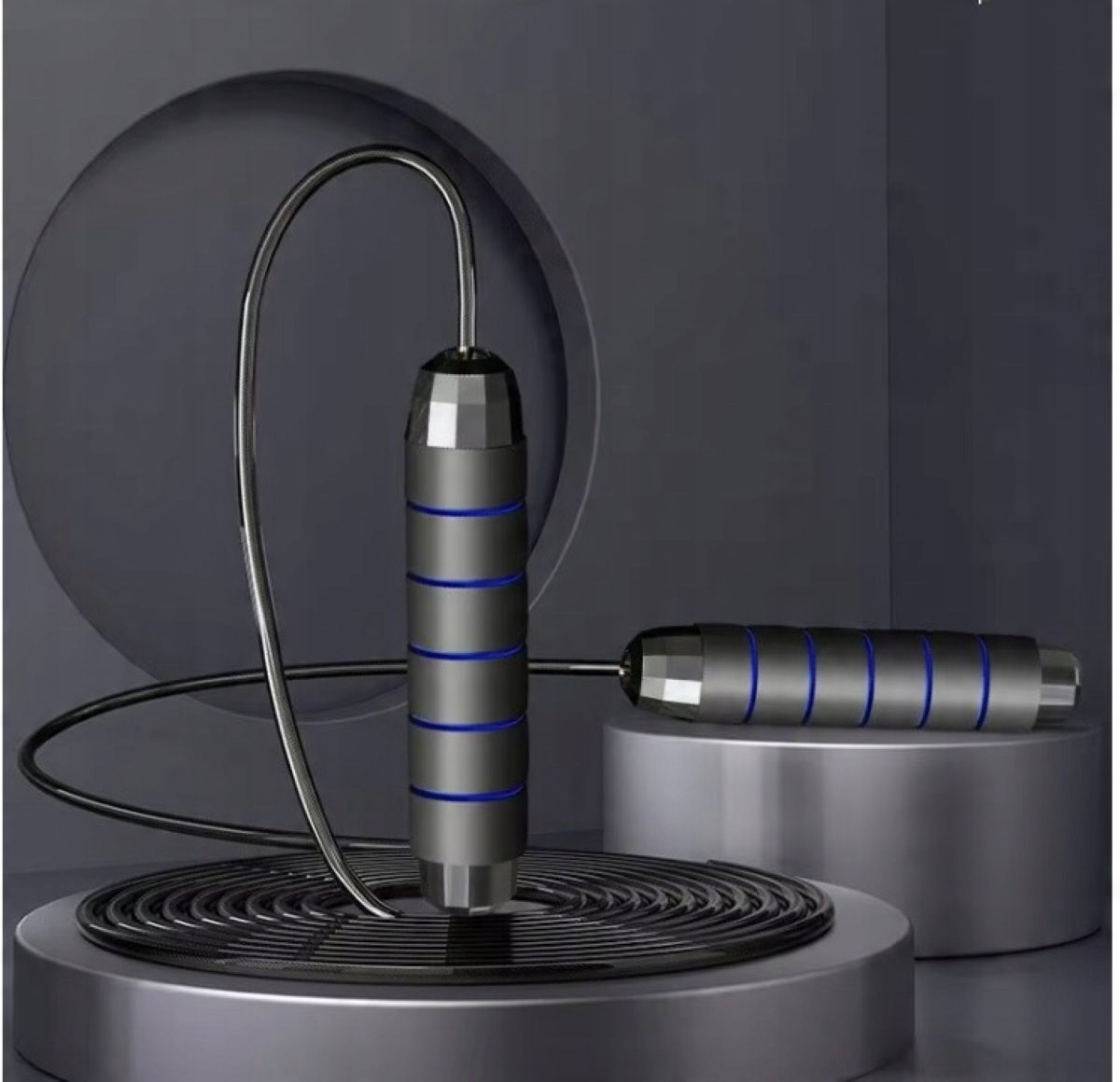ЖЕЛАЯ СКАЛАВКА С ДВУМЯ ПОДШИПНИКАМИ, ЗАЩИТА ОТ БРЫЗГОВ, С СТАЛЬНОЙ ПРОВОЛОКОЙ В ПВХ-ОПЛЕТЕ - CROSSFIT FITNESS BOXING SPORTS, РЕГУЛИРУЕМАЯ ДЛИНА - ЧЕРНАЯ