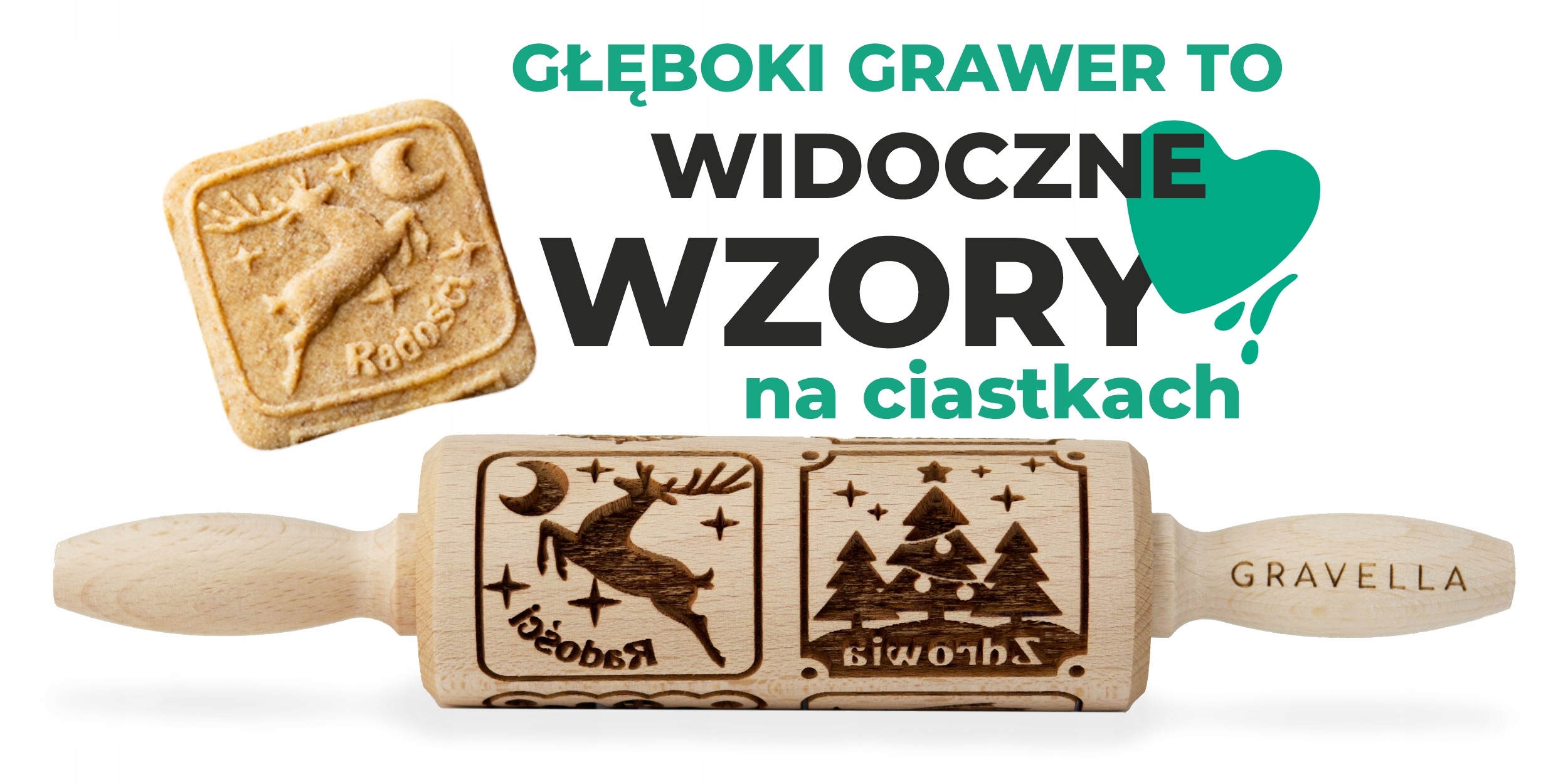 Скалка GRAVELLA, велика, глибоке гравіювання, для подарунка Діду Морозу