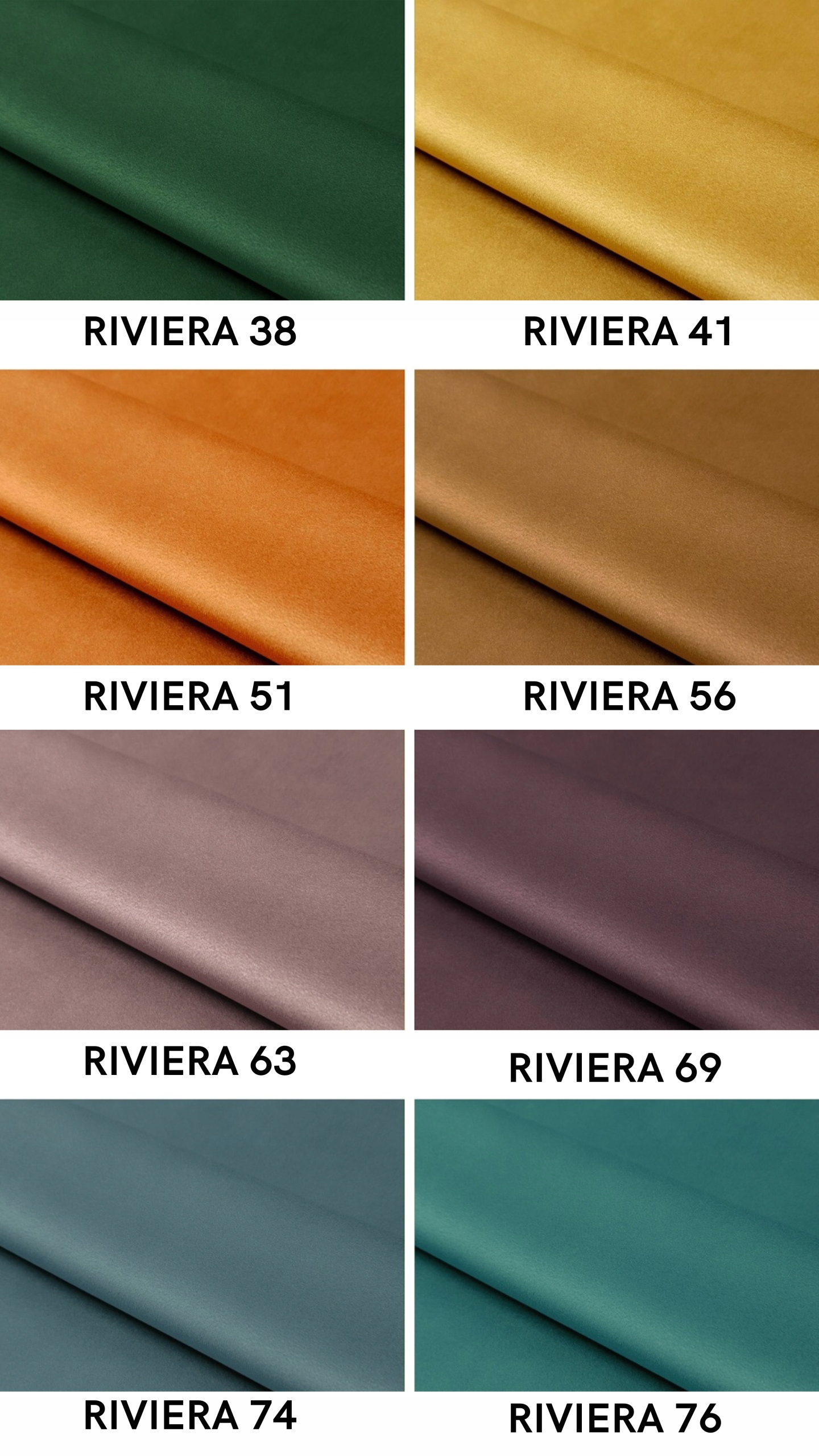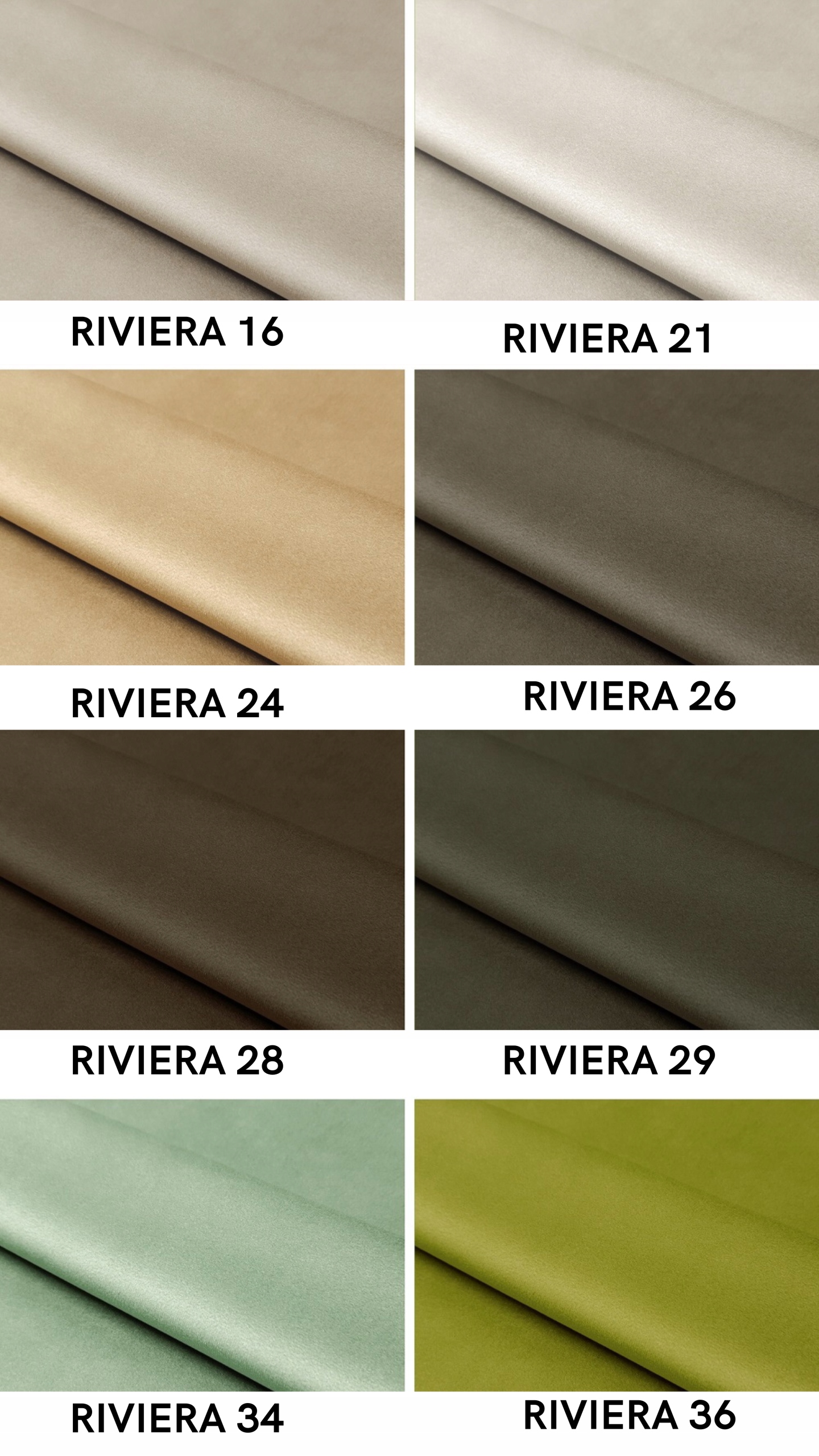 RIVIERA покрыта специальным защитным слоем, создающим гидрофобное покрытие, предохраняющее от быстрого проникновения жидкостей, что не позволяет ткани сразу впитывать воду, в результате чего жидкость конденсируется на поверхности. материал.