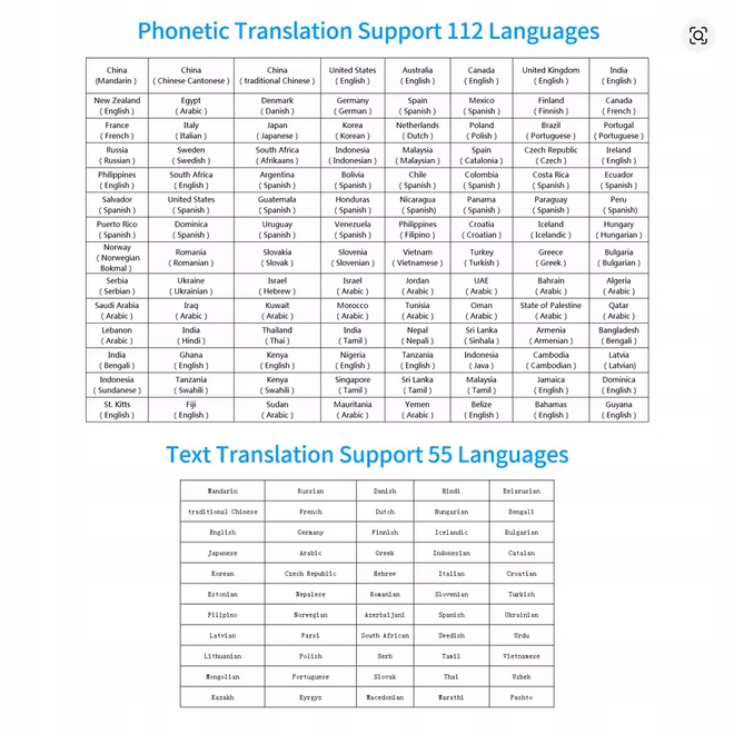 - Компактная и портативная конструкция: легкая и портативная, она идеально подходит для использования в путешествиях. Сканируйте, переводчик или прочитайте текст где угодно, вы можете подключить наушники Bluetooth.