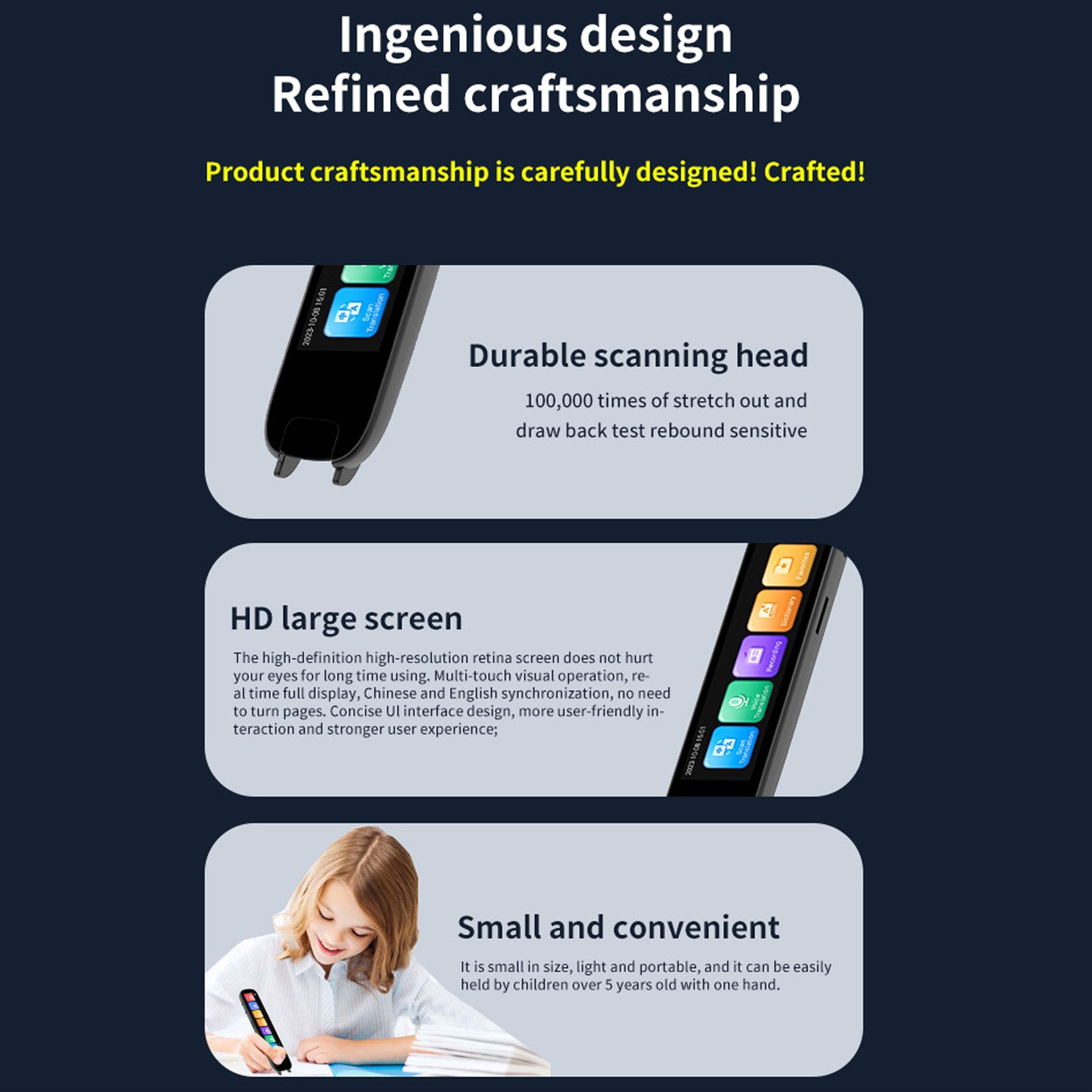 1. [Многофункциональный] Этот ковшник имеет экологический корпус АБС и экранинг с высоким разрешением, который заботится о глазах, уравновешивая экологическую функциональность и удобство пользователя. Он может высохнуть, читать, объяснять, оценивать и всесторонне анализировать сову, длинные предложения и абзацы. [Огромная английская библиотека] Одна ручка решает проблему всех школ, в том числе английский в начальной школе, средней школе, средней школе и в университете, с 2,75 миллионами профессиональной подготовки, удовлетворяя необходимость в союзе на всех этапах образования. [Универсальный Downshow] Интегрирован с более чем 240 подлинными мечтами для интуитивной интерпретации, быстрых поисков и подробных объяснений, благодаря которой он является универсальным для образовательного, профессионального и развлекательного использования. [Склеивает фрагмент автономного текста] Сливает фрагмент автономного текста, сохраняет время и посев, не решает проблемы с сетью, фрагмент онлайн может быть синхронизирован с телефоном в прошлый раз! [Интеллектуальная запись] Использование двойного микрофона с уменьшением шума высокого разрешения для декодирующих записей, со временем записи до 16 часов для запоминания важной информации. [Большая батарея емкости] оснащен литий-полимерной батареей с большой пропускной способностью, обеспечивающая время использования пониженной скорости до 3-4 часов, обеспечивая надежные действия во время путешествий или бизнес-классов