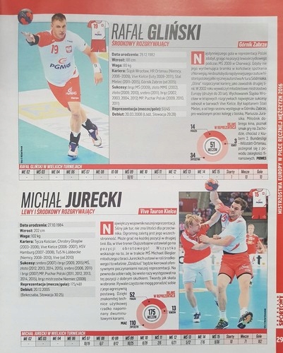 Описание: Подготовлено редакцией «Przegląd Sportowy», сокровища болельщика Европы Чемпионат по гандболу среди мужчин, проходивший в 2016 году, проходил в Польше. Там вы можете найти, среди прочего: общий текст, анонсирующий чемпионат, интервью с тренером сборной Польши Михаэлем Биглером, напоминание о результатах европейской квалификации, турнирная сетка и расписание, подробные профили сотрудников и игроков сборной Польши (в том числе Славомир Шмаль, Михал Юрецкий, Кшиштоф Лиевский, Михал Дашек, Пшемыслав Краевский), а также выступление группы 16.