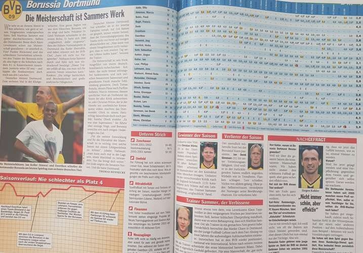 Игры Бундеслиги и Кубка Германии. Большая часть каждого журнала посвящена полной документации всех матчей Бундеслиги данного сезона, раунд за туром (составы, авторы голов, карточки, количество зрителей) и множеству различных статистических сводок. Каждый журнал иллюстрирован множеством красочных фотографий описываемого сезона. «Сокровища» опубликовано на немецком языке.
