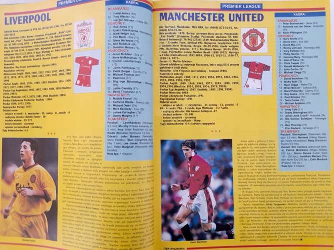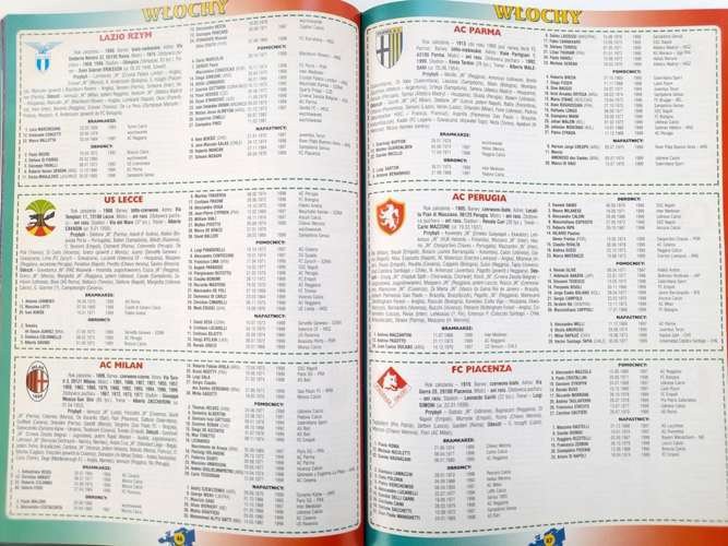 Описание: хронологически организовано и связано в хорошей, сложной лиге лиги. Копии) и Английская лига (5 копий), опубликованные в 1996-1997 - 2002 гг. В рамках футбольной библиотеки (футбольный еженедельник). Сокровища содержат в различных компиляциях, касающихся отдельных сезонов, команд, информации о клубах, переводах, фотографиях футболистов, карт стран с клубными местами, расписаниями лиги из следующих стран: Премьер -лига (Премьер -лига и первая дивизия, Испания, Италия, Германия, Франция, Бельгия, Нидерланды, Португаля, Шотландия и Австрия. Кроме того, публикации включают в себя подробные биографии с фотографиями польских игроков, играющих в клубах этих лиг в течение данного сезона (так называемый польский иностранный легион). На внешних и внутренних обложках есть полные фотографии (плакаты) ведущих команд из отдельных сезонов.
