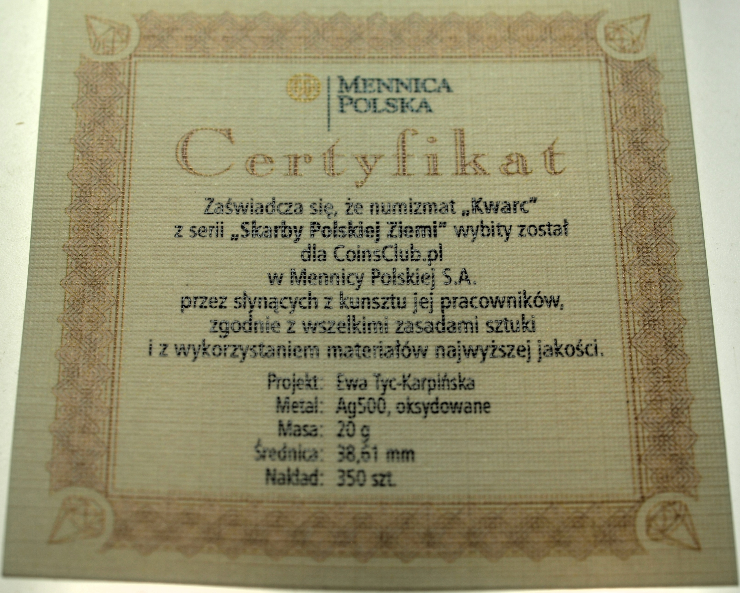 Покупая «Сокровища польской почвы - горное хрустальное серебро» данный товар из каталога «Медали» вы можете быть уверены, что после оформления заказа, доставки в Украину, вы получите именно то, что заказывали, в оговоренные сроки и европейского качества.