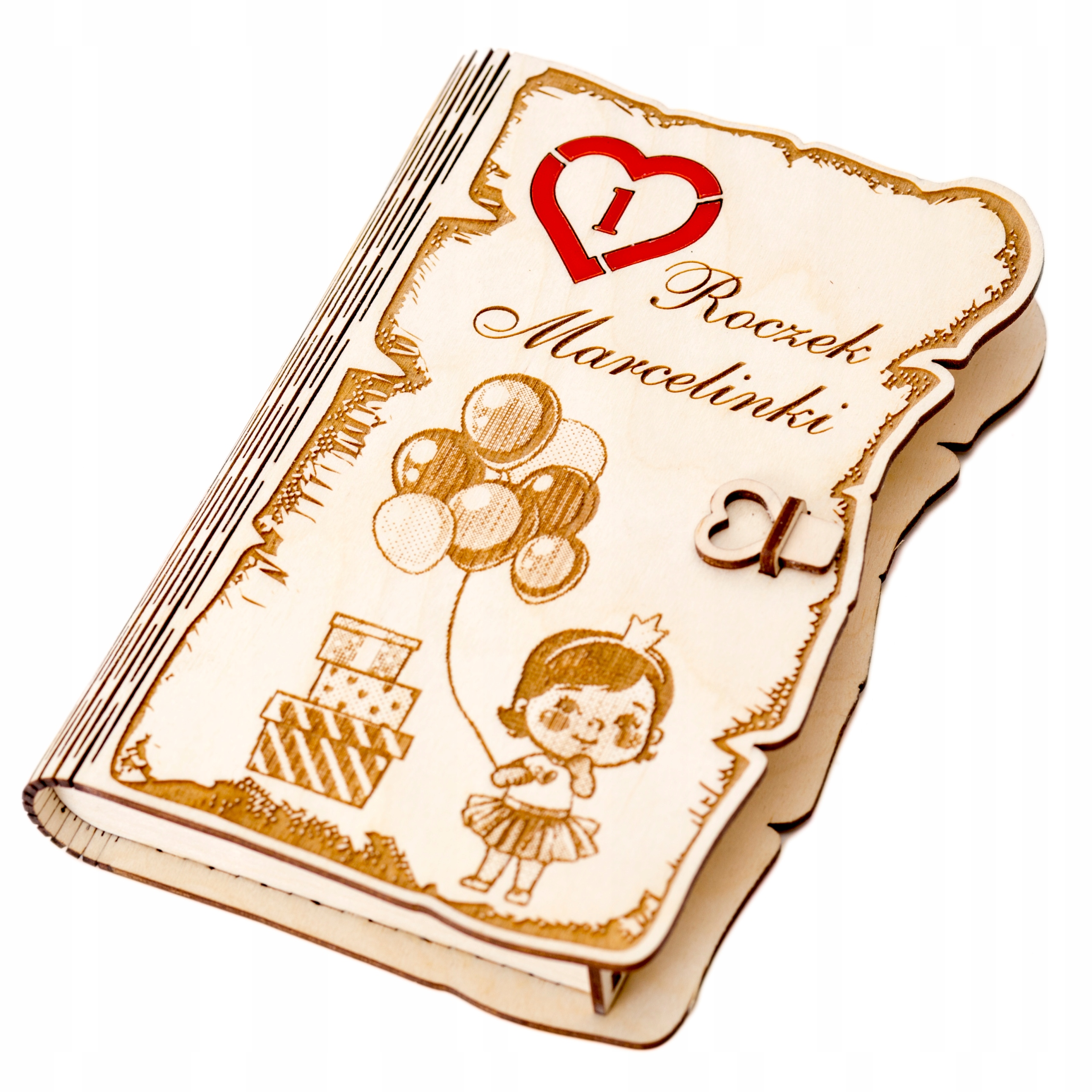 Шкатулка для денег с индивидуальной гравировкой в виде книжки для годовалого ребенка