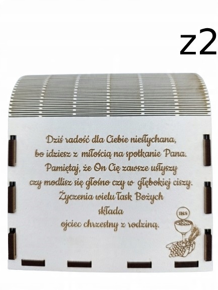 Добро пожаловать на наш аукцион, где мы представляем вам элегантную коробку для причастия, изготовленную из высококачественной белой плиты HDF. Этот красивый сундучок станет прекрасным подарком к первому Святому Причастию, который порадует своим внешним видом и оригинальностью.