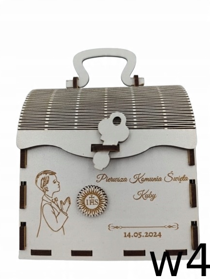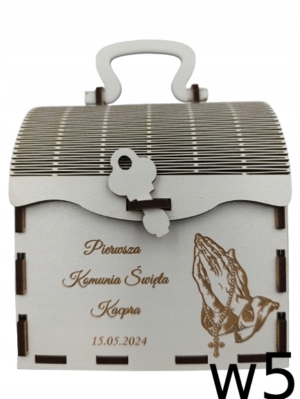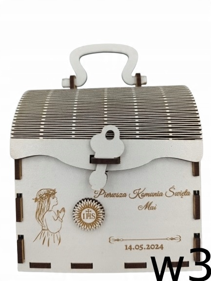 Добро пожаловать на наш аукцион, где мы представляем вам элегантную коробку для причастия, изготовленную из высококачественной белой плиты HDF. Этот красивый сундучок станет прекрасным подарком к первому Святому Причастию, который порадует своим внешним видом и оригинальностью.