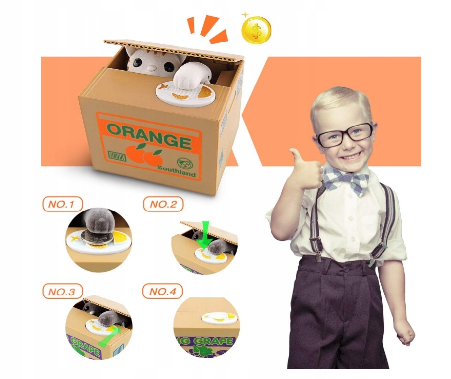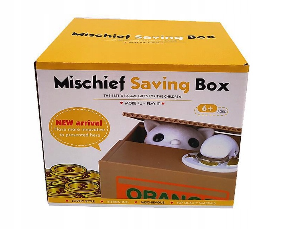 С этим очаровательным пигги -банком ваш ребенок будет смеяться как сумасшедший после того, как котенок возьмет первую монету. Идеальная игрушка для каждого ребенка, который сделает вашего ребенка настолько радостью, что он влюбится в их новую любимую игрушку. Это отличная альтернатива классическому пилочковому берегу. Его также можно использовать для украшения дома, стола, стола или детской комнаты.