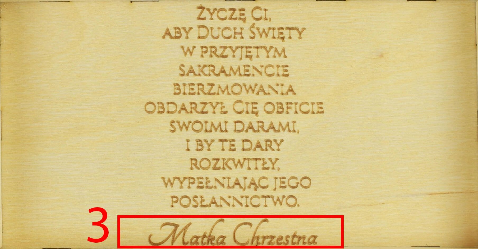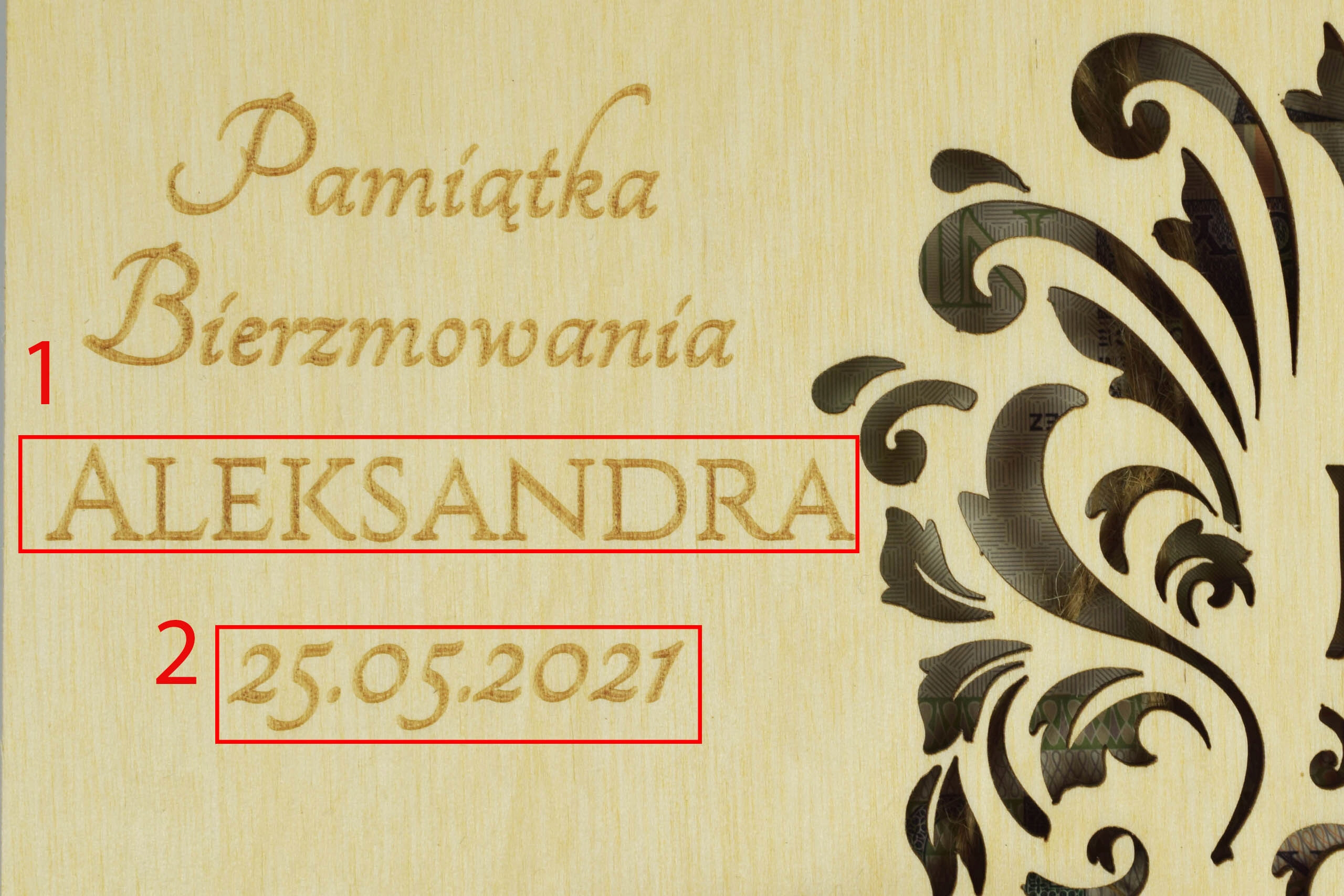 При покупке дополнительной услуги гравировки (доступна на других наших аукционах) мы можем заменить текст с выкройки на текст, предоставленный покупателем. Помните, что количество отправленных клиентом символов должно соответствовать количеству символов текста из шаблона.