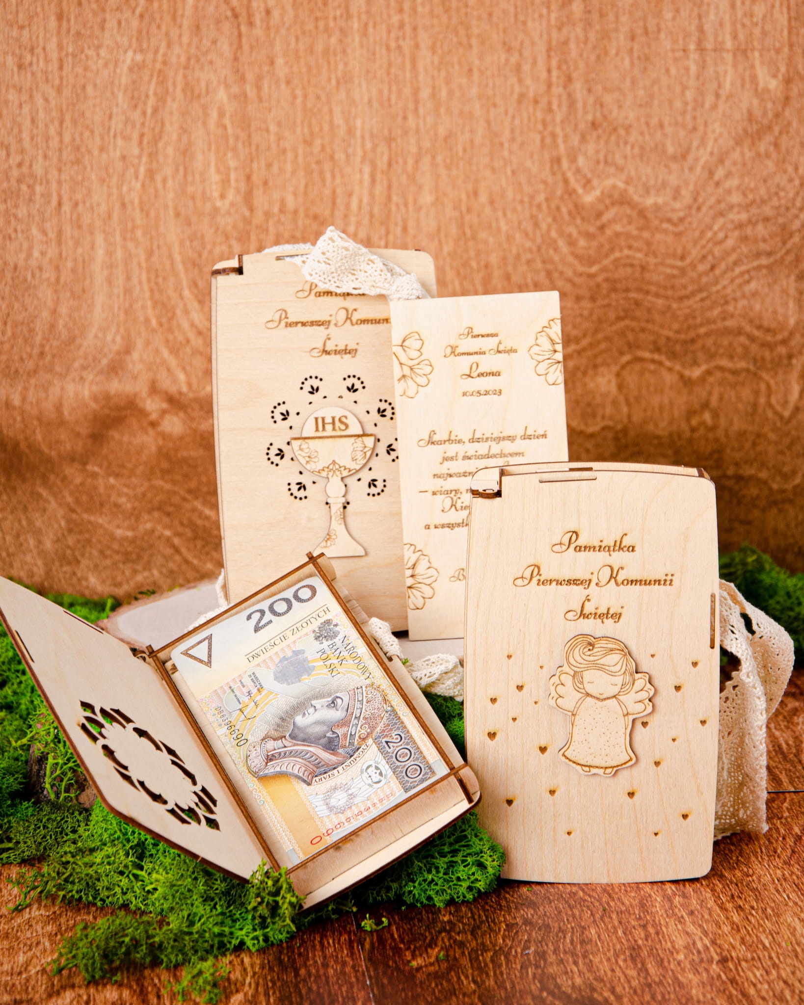 На внешней стороне коробки традиционный текст «Сувенир Первого Причастия»