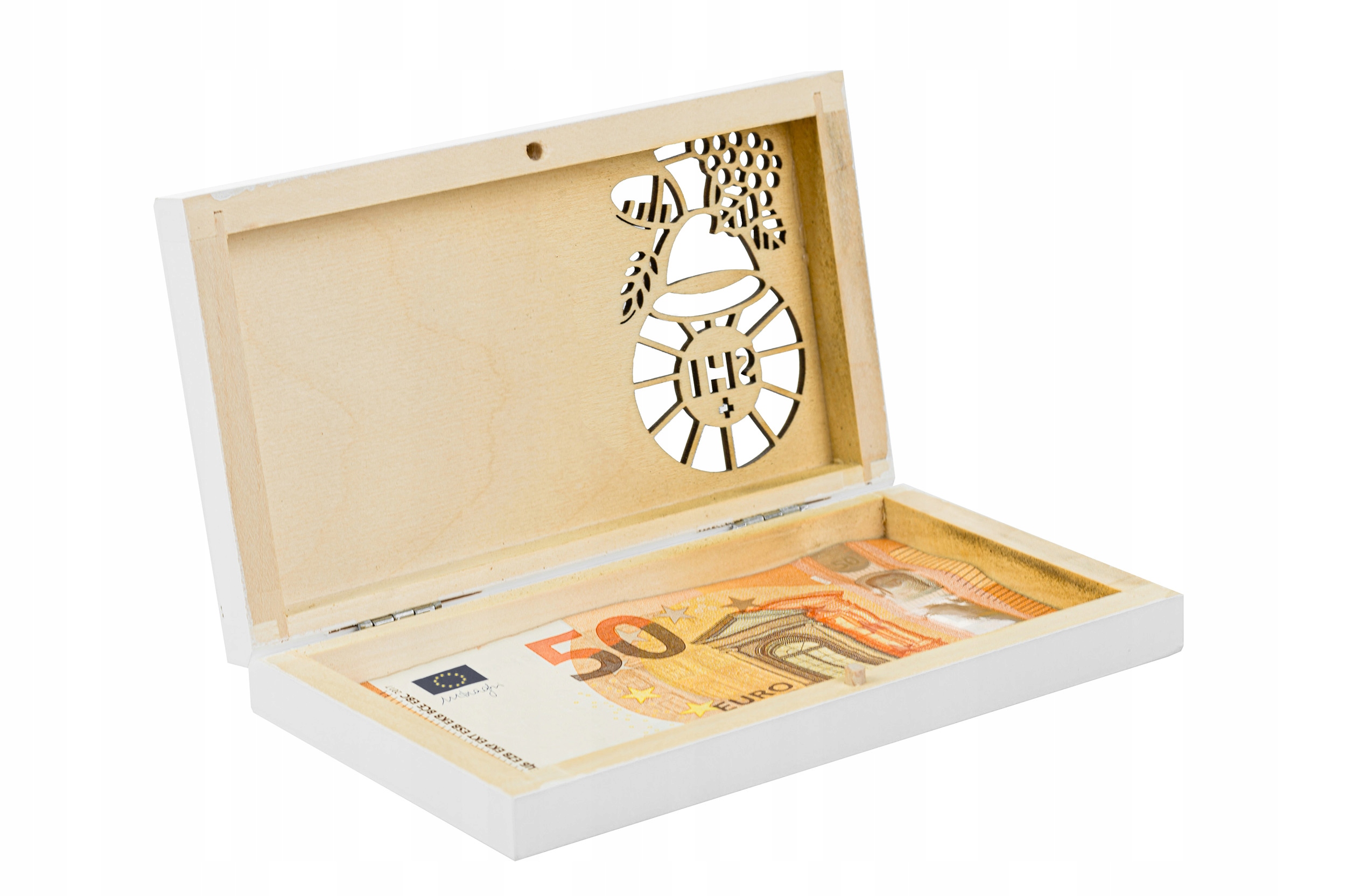 На следующем аукционе мы представляем деревянную копилку для Первого Причастия. Экологичные материалы, красивая огранка и гравировка придают изделию атмосферу и характер. Мы можем свободно класть внутрь купюры, а гравировка желаний заменит классическую открытку. Такая форма вручения подарка позволит получателю почувствовать себя особенным.