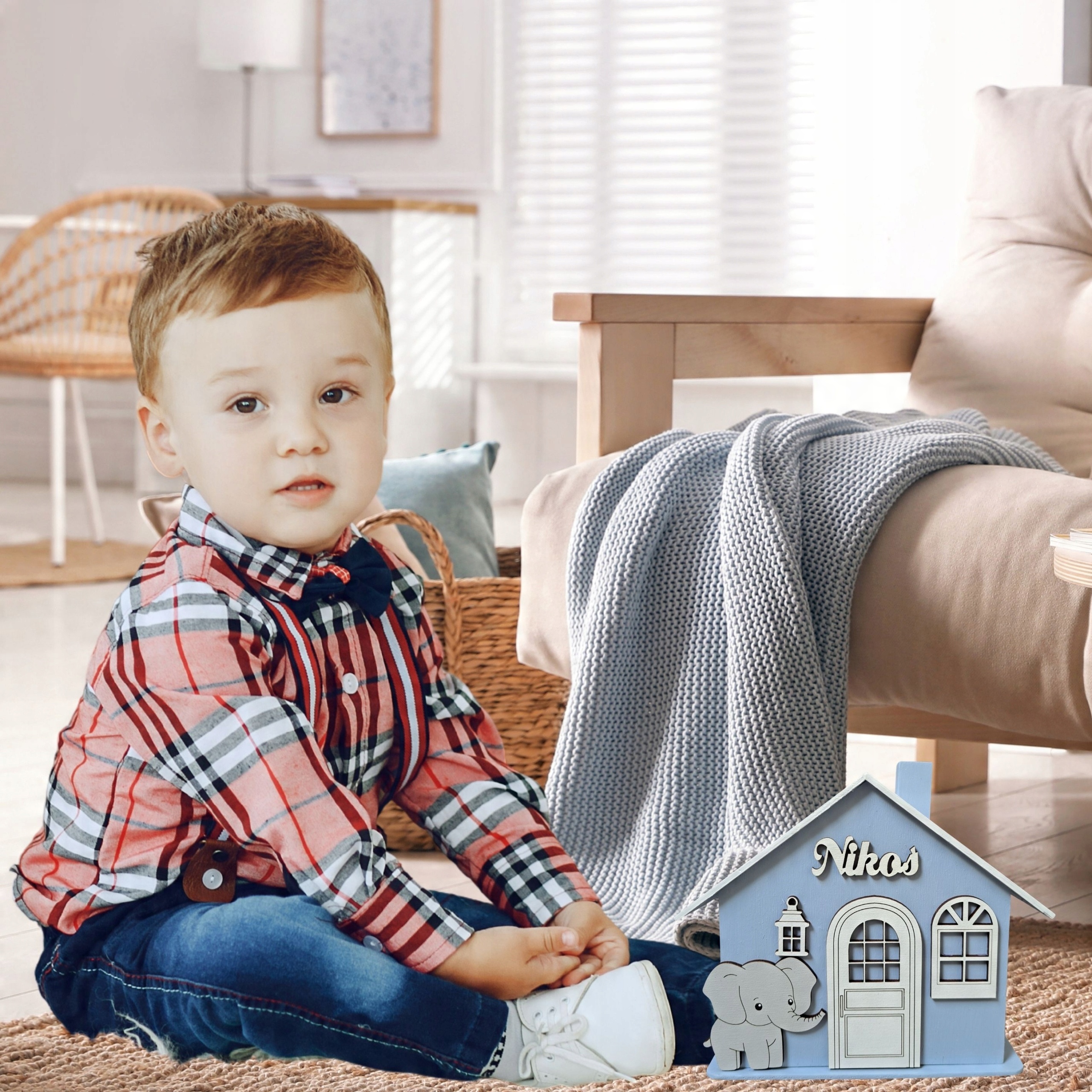 >Вверху, на видном месте, деревянная надпись с именем ребенка.