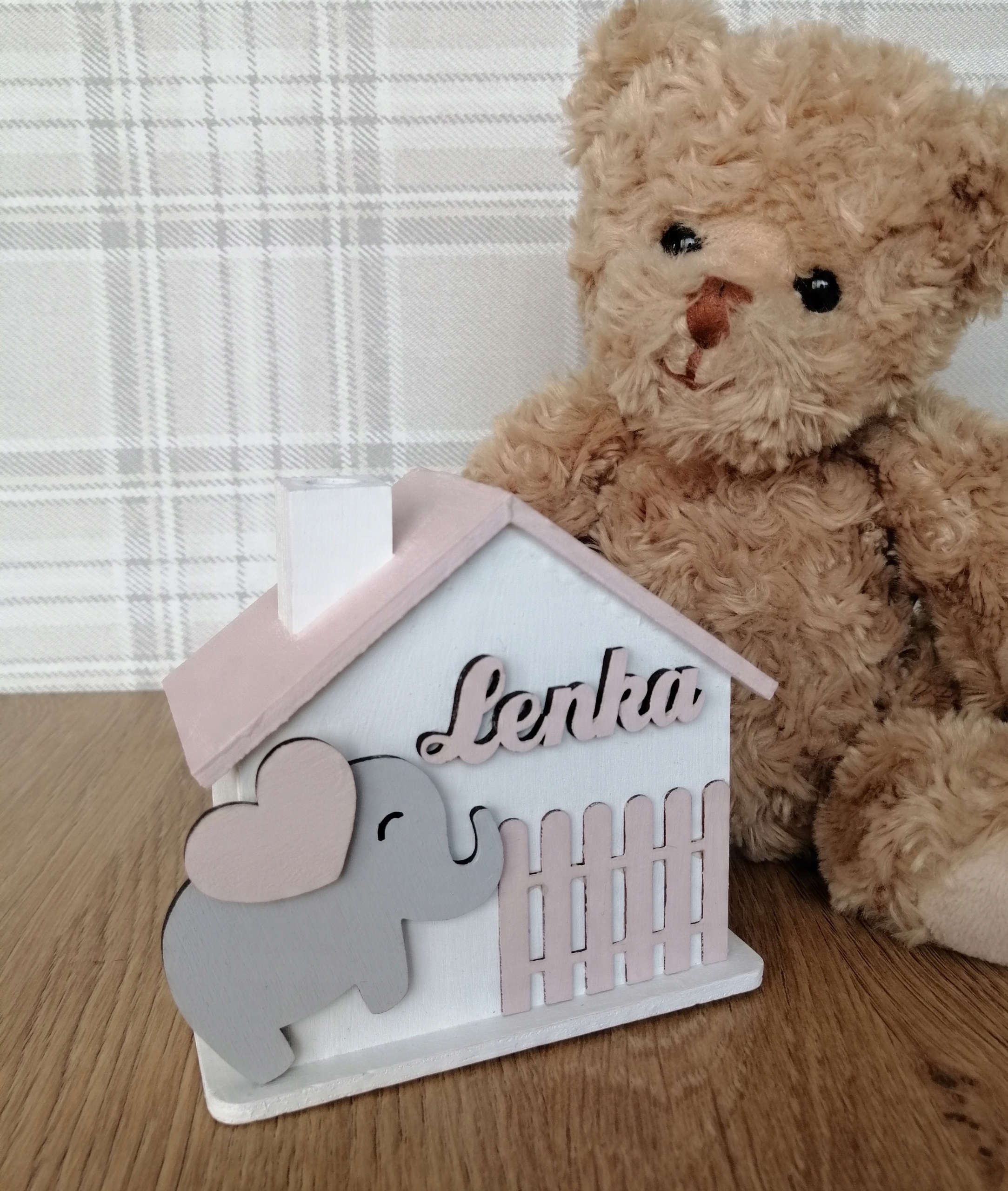 Деревянная копилка, расписанная вручную в виде домика, станет прекрасным подарком каждому ребенку на разные случаи жизни. В передней части копилки имеется ограждение и декор, расписанный вручную. Вверху, на видном месте, деревянная надпись с именем ребенка.