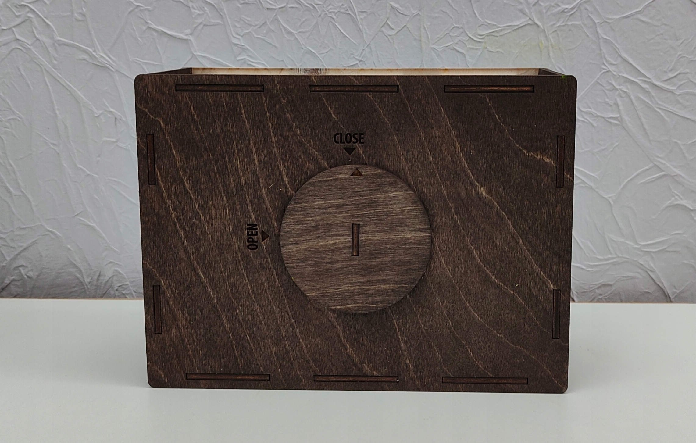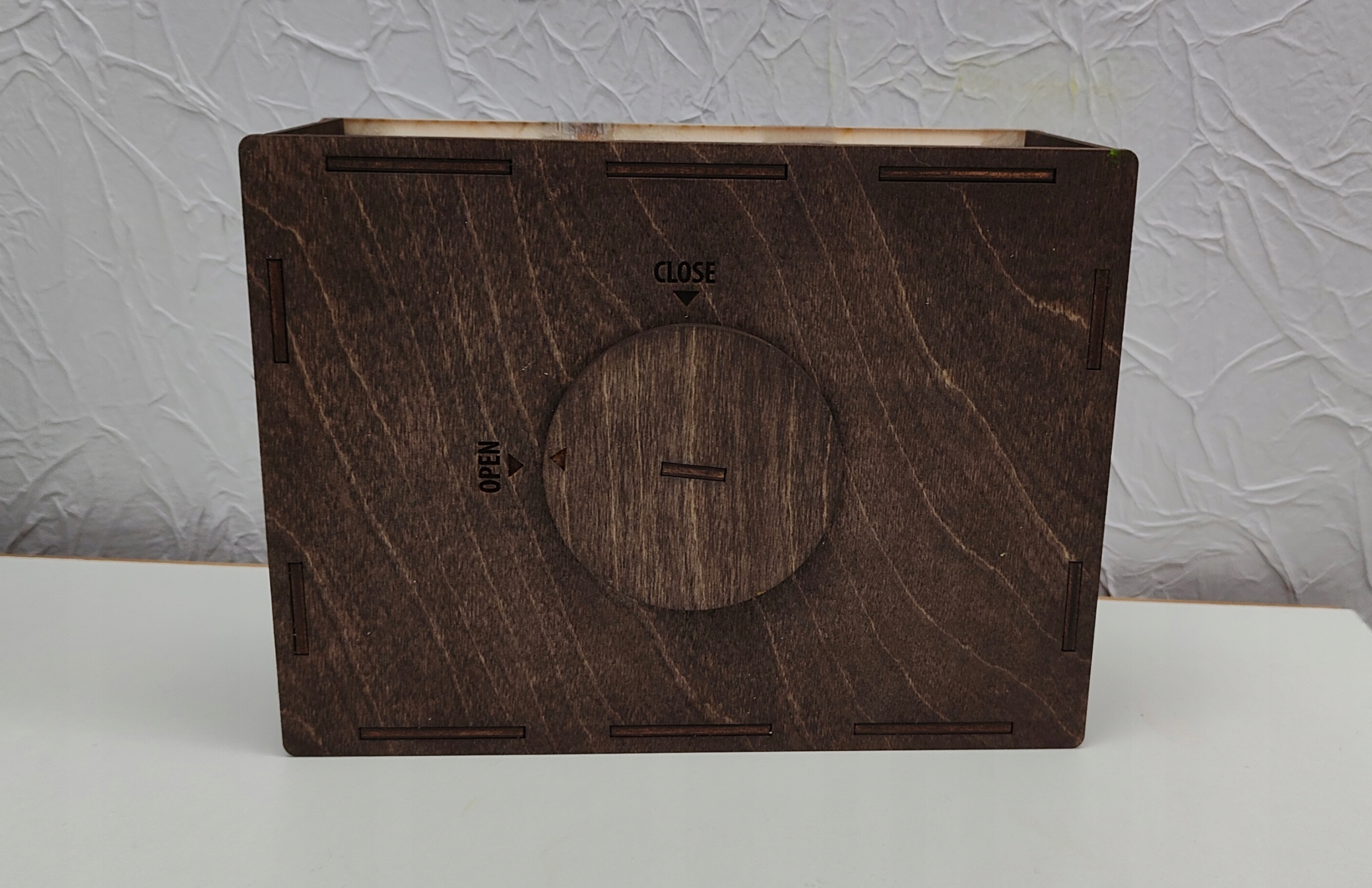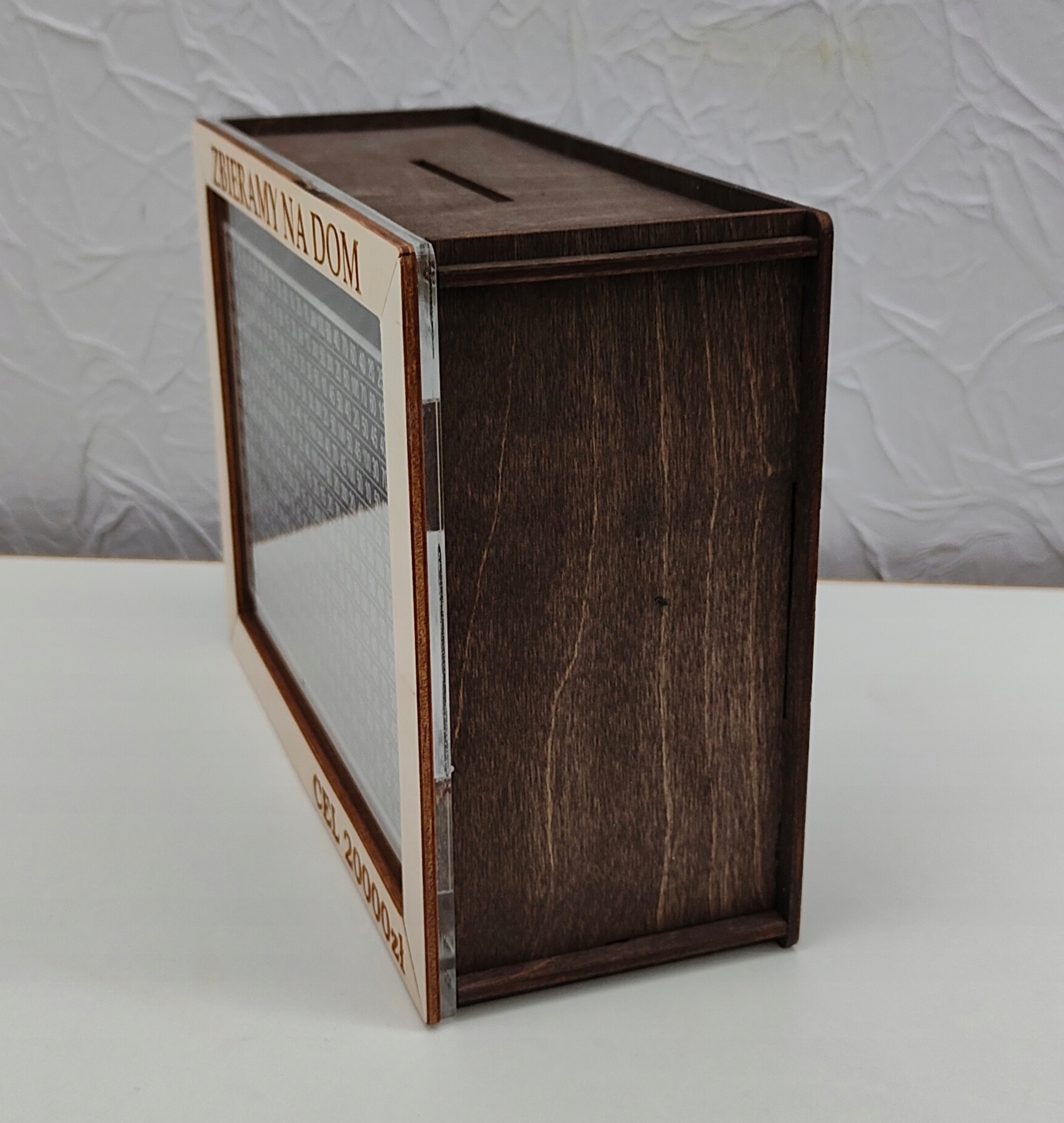 Копилка изготовлена из фанеры толщиной 3мм, пропитанной цветом палисандр. Дополнительно рамка из фанеры 3мм, на которой гравируемЛЮБОЙ ВАШ ТЕКСТ/ЦЕЛЬ.