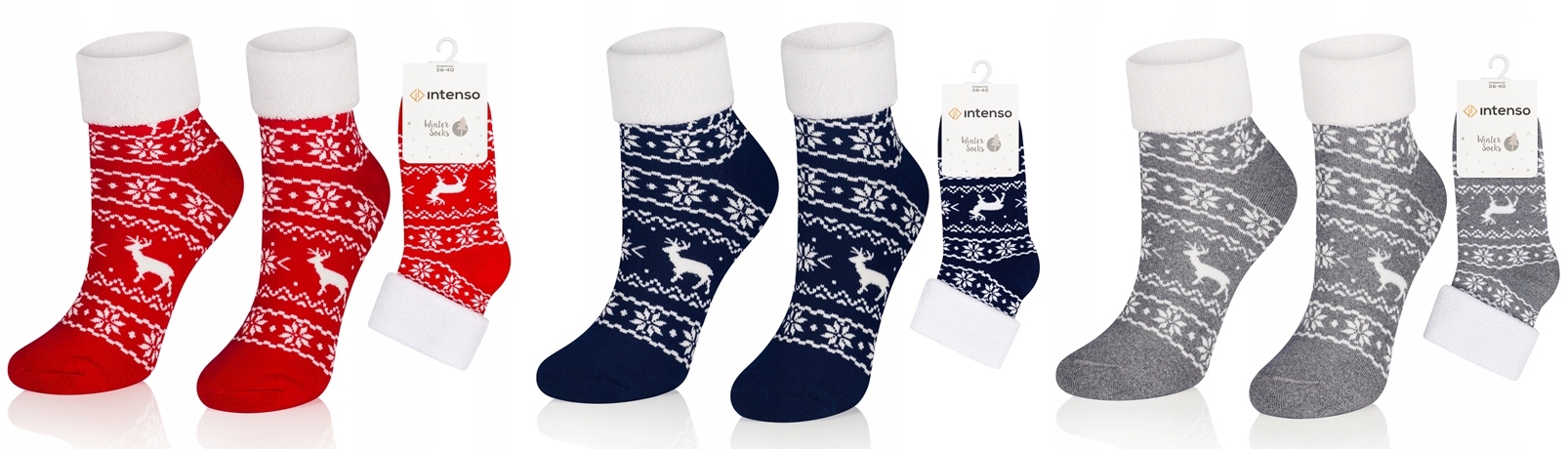 SKARPETKI BEZUCISKOWE DAMSKIE FROTTE WINTER GRUBE CIEPŁE WZÓR NORWESKI