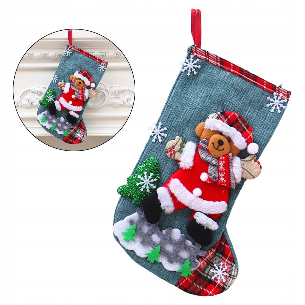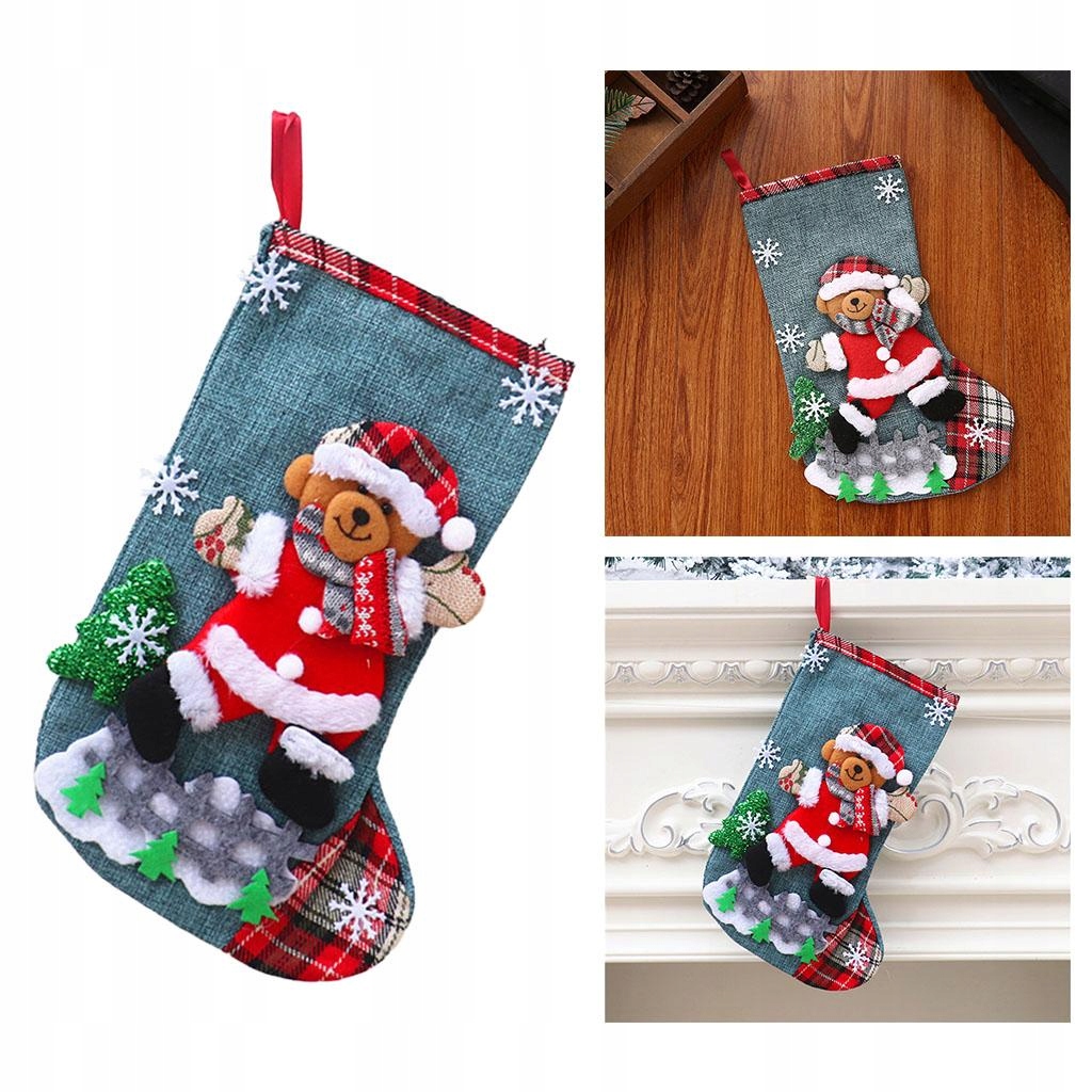 Skarpety świąteczne Mikołaja, wypełniacz cukierków, rodzina, choinka, okno, niedźwiedź