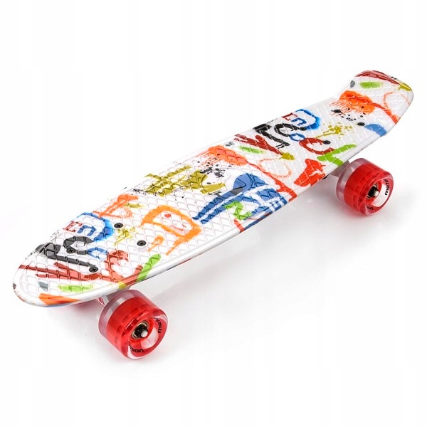 Описание продукта: Madej Skateboard 004486 - это легкий и долговечный скейтборд, предназначенный для детей и начинающих пользователей. Это отличается привлекательными, красочными конструкциями и твердой конструкцией из материалов, устойчивых к потреблению. Компактный размер облегчает передачу и хранение, а тщательно выбранные компоненты обеспечивают плавное и безопасное вождение. Дополнительная привлекательность - колеса, оснащенные впечатляющей светодиодной подсветкой, которая светит во время вождения.