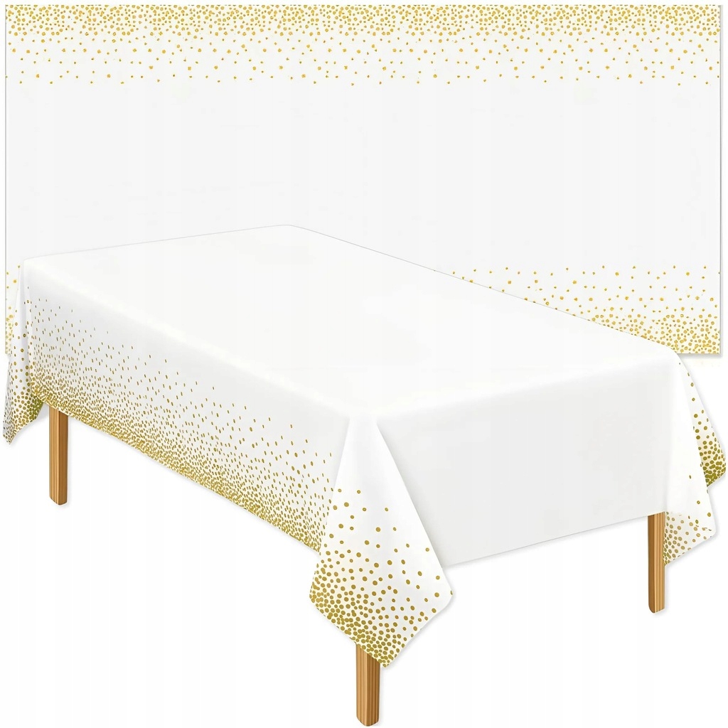 СКАТЕРТИНА ФОЛЬГОВАНА ОДНОРАЗОВА ВОДОНЕПРОНИКНА БІЛА В ЗОЛОТІ ТОЧКИ ПЛЯМОСТІЙКА