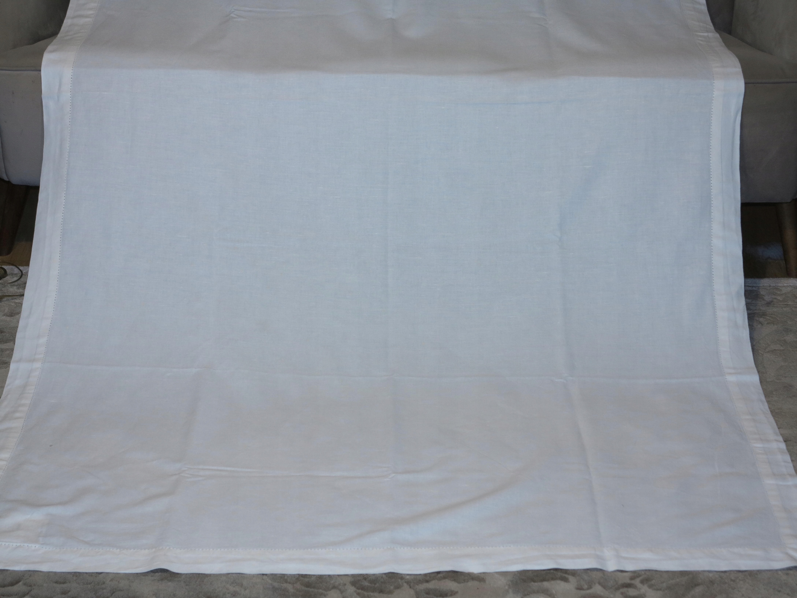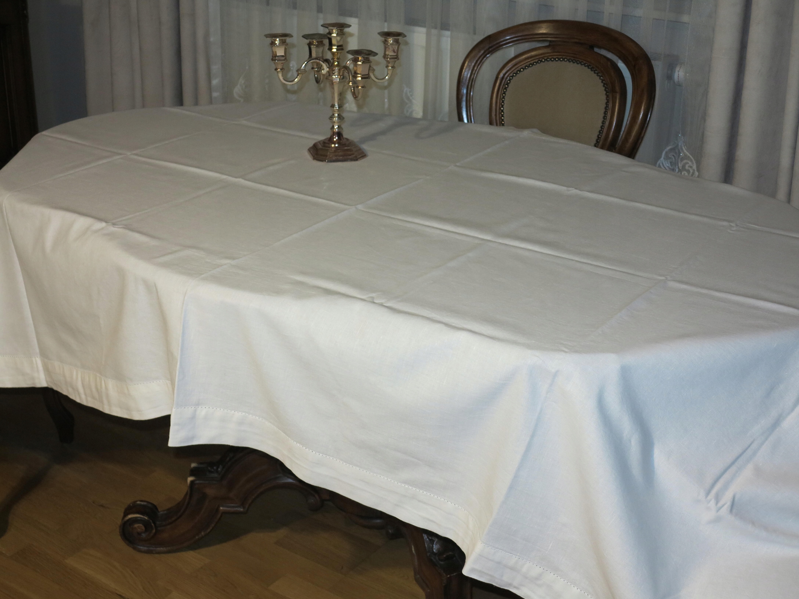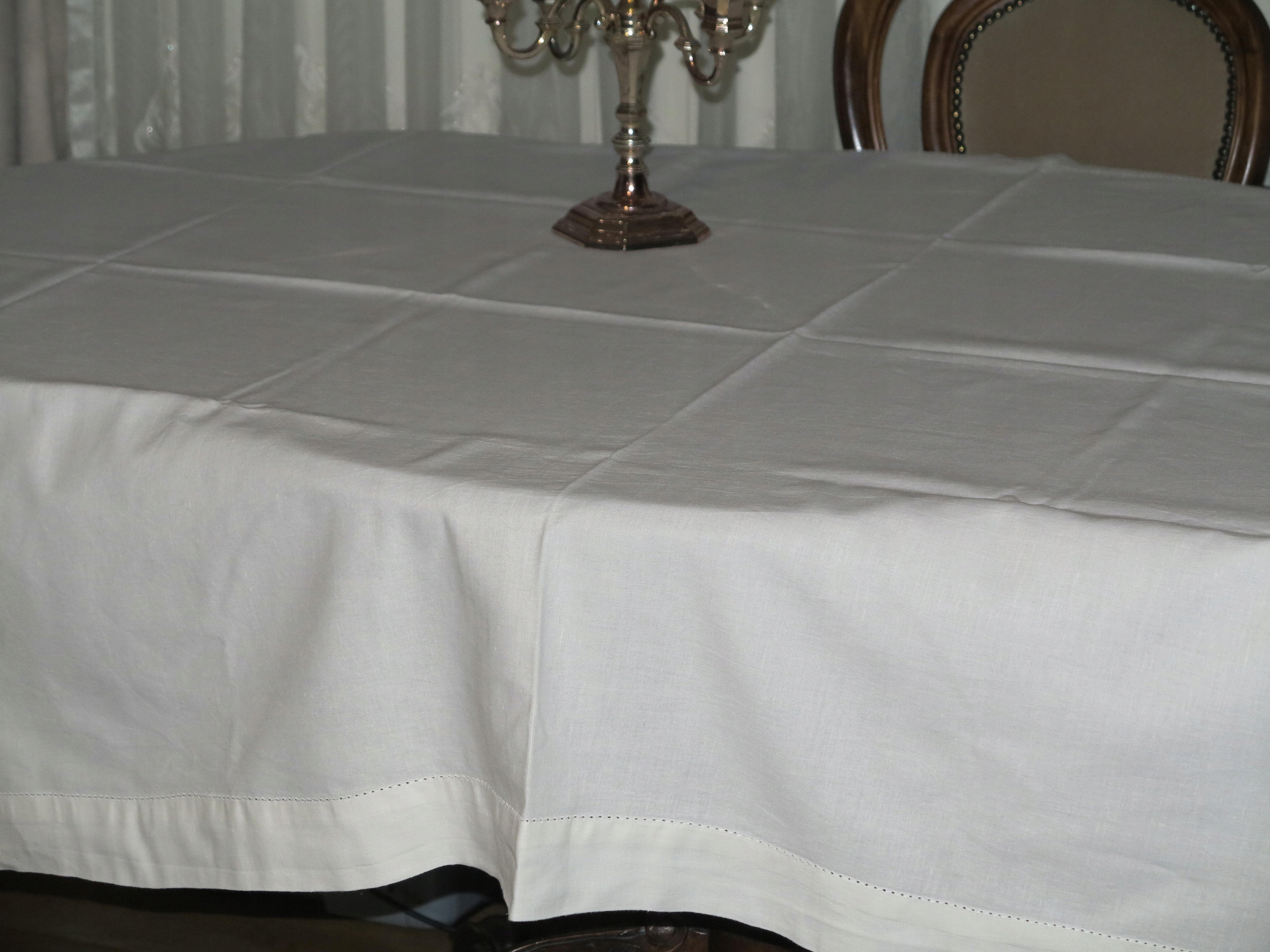 Тема На аукционе представлена красивая классическая белая скатерть из льна и хлопка. Имеет размеры: 231/136см. Скатерть б/у, но в очень хорошем состоянии и качестве. Рекомендую