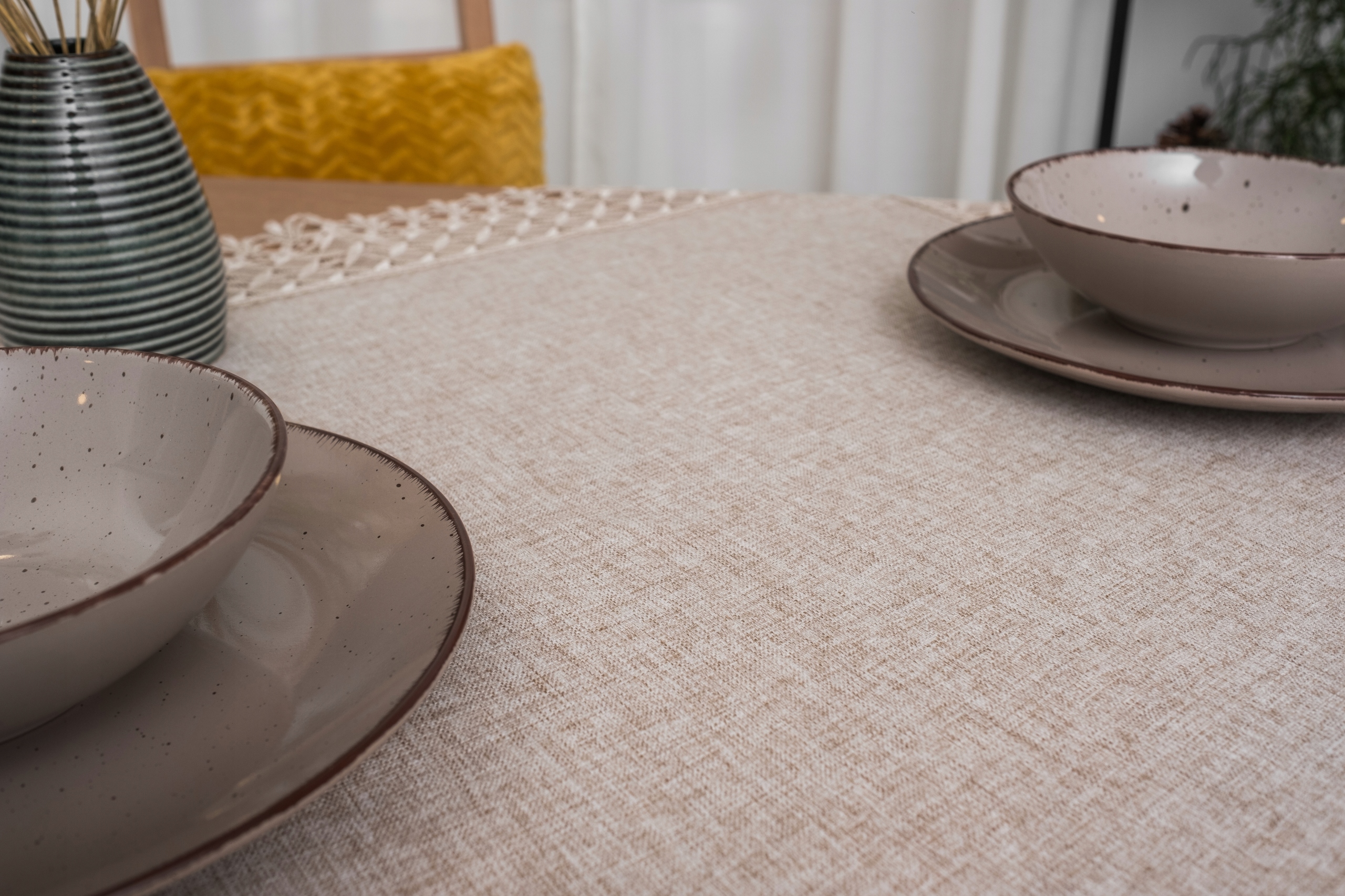 ОДНОРОДНАЯ СКАТЕРЬ, имитирующая ЛЬНО, с гипюровым кружевом