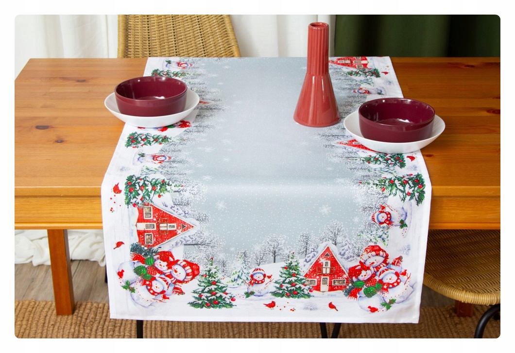 Скатерть на Рождество, Дед Мороз, РОЖДЕСТВЕНСКИЕ ДЕРЕВКИ, зима, 140х250, грязеотталкивающая