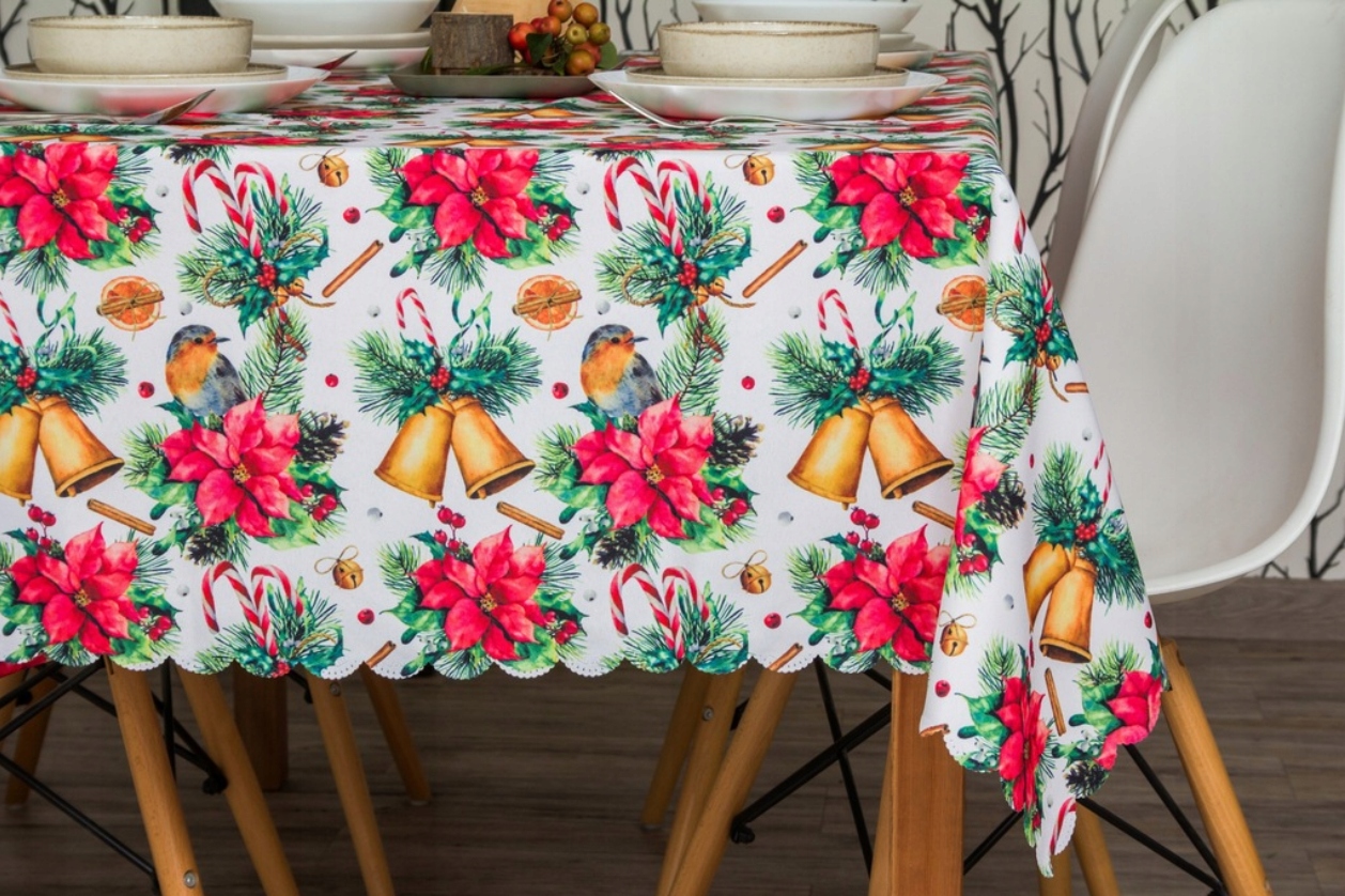Во время праздников стол становится центром семейных встреч, разговоров, воспоминаний и моментов, полных радости. Неудивительно, что мы хотим, чтобы он выглядел уникально. Эта нарядная рождественская скатерть придаст любой сервировке волшебный, теплый и уютный характер, который порадует ваших близких с первого взгляда.