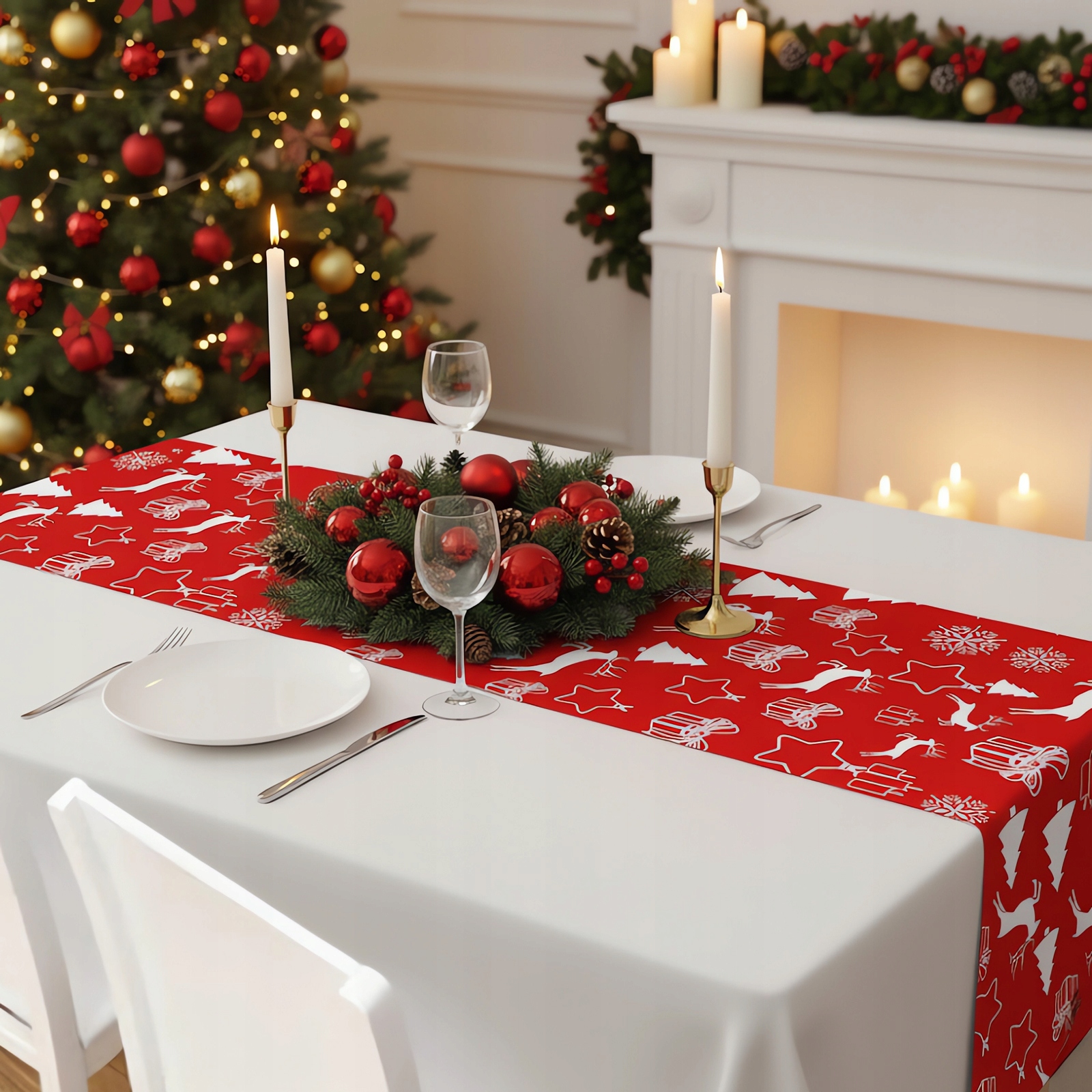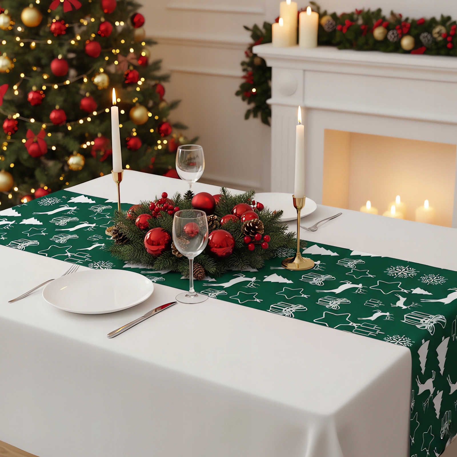 Ниже представлена композиция с дорожкой для рождественского стола (есть в других предложениях)
