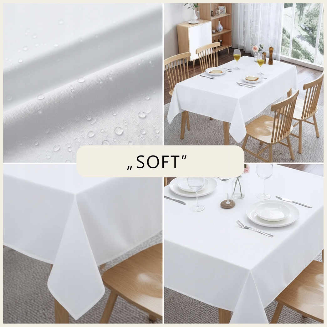 Стильная Скатерть SOFT придаст элегантности любому столу - идеально подходит как для повседневного использования, так и для особых случаев, таких как праздники, вечеринки, причастия или свадьбы. Благодаря своему универсальному характеру она также отлично подойдет для ресторанов, кафе и других заведений общественного питания.