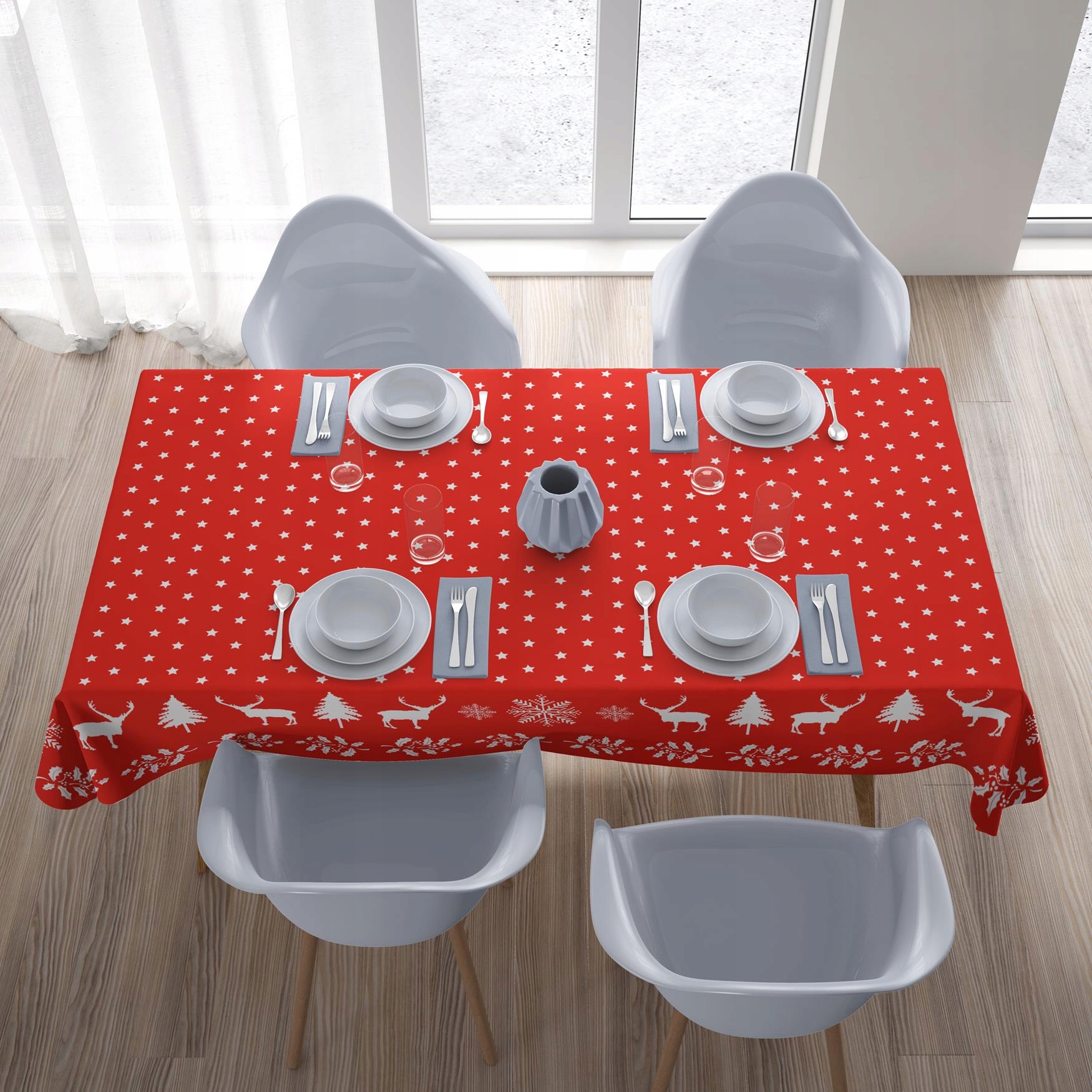 СКАТЕРТИНА СТІЙКА ДО ПЛЯМ 140х220 МАТОВА ГЛАДКА РІЗДВОВА