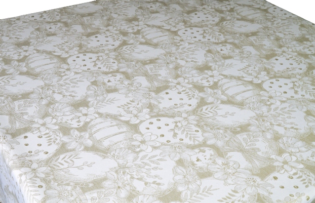 Теплый бежевый, оттенок античного серебра, мягкая, очень грязеотталкивающая пасхальная скатерть. 100% польское производство (придумано, произведено, изготовлено на польских фабриках на каждом этапе).