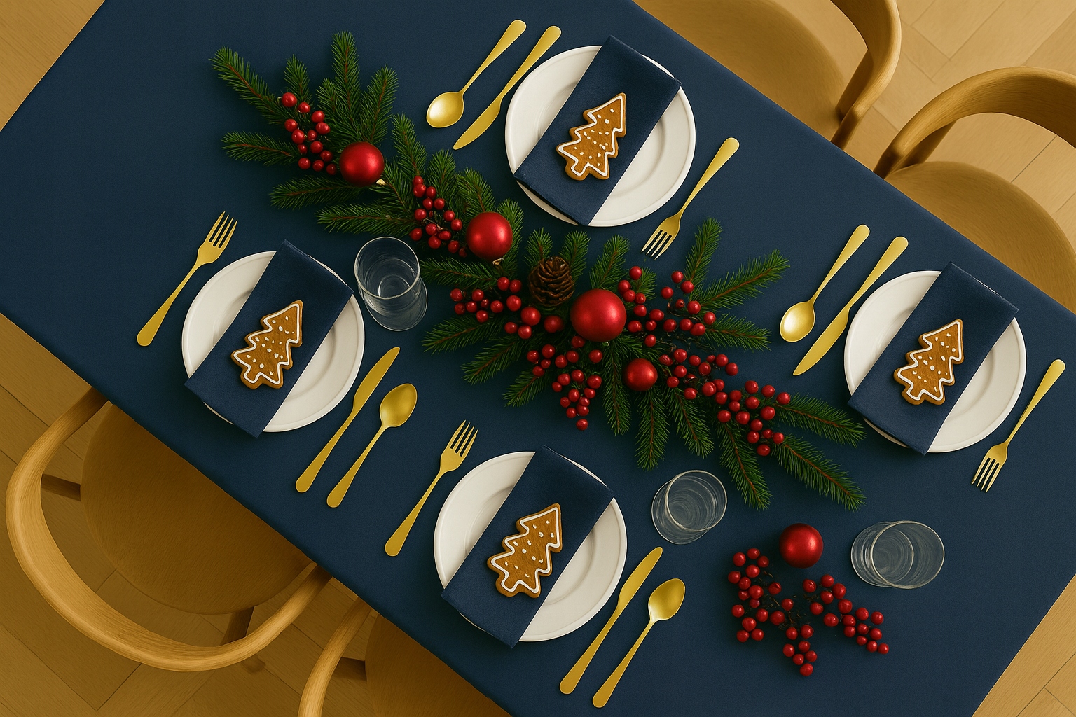 - ✨Рождественская атмосфера: БЕЛЫЙ цвет в сочетании с рождественскими мотивами, такими как снежинки, делает ваш стол настоящим центром рождественских посиделок.