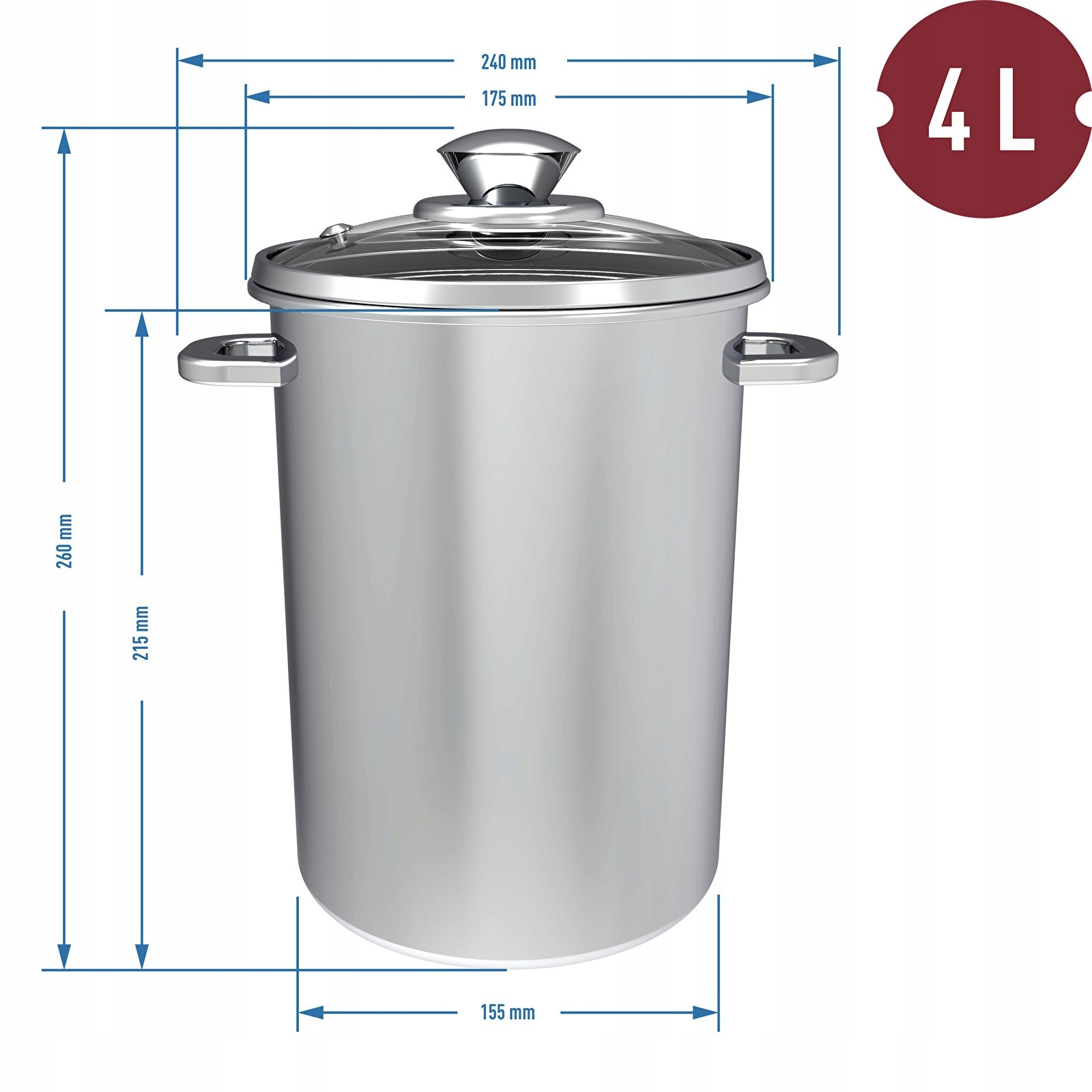 - незаменимый на кухне - высокий, удобный и многофункциональный горшок с емкостью 4 л, со стеклянной крышкой и корзиной будет работать на вашей кухне во многих ситуациях, в том числе Вы можете удобно готовить спаржу или пасту спагетти. нержавеющая ставка, заклепывавшихся ручек. Крышка горшка изготовлена из закаленного стекла и оснащена парой. Поэтому продукт будет удобен в использовании и будет обслуживать вас годами! Типы печей: электрические, индукционные и газовые пластины. Продукт можно вымыть в посудомоечной машине. Корзина с держателями из нержавеющей стали, включенной в набор, также позволит вам удобно готовить и сливать овощи и макароны, а также фри фри! Горшок также идеально подходит для приготовления спаржи в вертикальном положении, без необходимости их связывать. Изготовленная из высококачественной нержавеющей стали, она оснащена выносливой стеклянной крышкой с парой открытием. Перед первым использованием все элементы набора должны быть тщательно промыты в теплой воде или в посудомоечной машине, а затем тщательно их высушите. 26,0 см. 15,5 см
