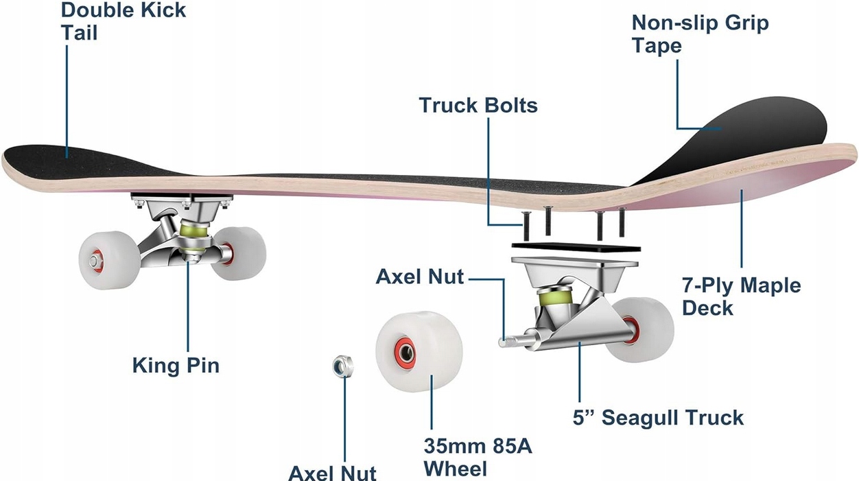 - Вы получаете полноценный скейтборд с прочными осями из алюминиевого сплава, которые экономят ваше время и силы при сборке. Сразу готов к развлечениям.