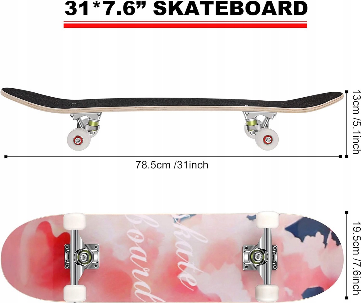 - Скейтборд, изготовленный с использованием водонепроницаемой и быстрой технологии термопечати, сохраняет свой блеск в течение длительного времени. Нескользящая наждачная лента высокой плотности обеспечивает устойчивость во время катания на скейтборде.