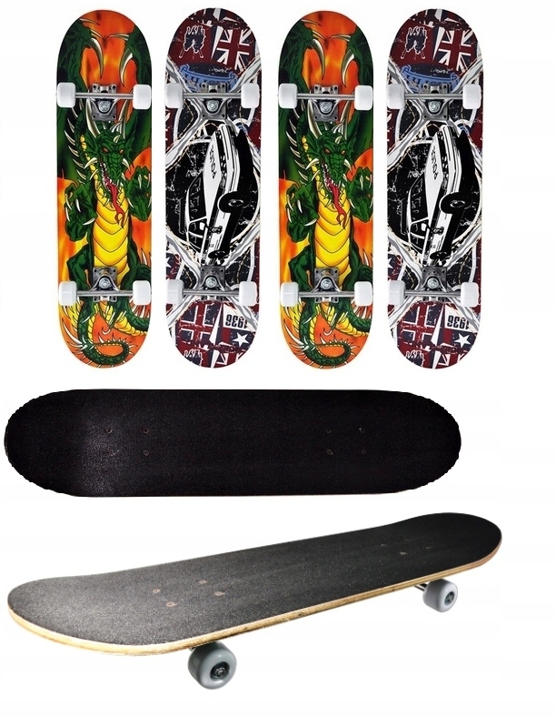 Классический прочный профилированный деревянный скейтборд с белыми колесами. Доска представлена шестью интересными и смелыми узорами. Дно защищено лаком. Скейтборд имеет прочную конструкцию и тщательно обработан.