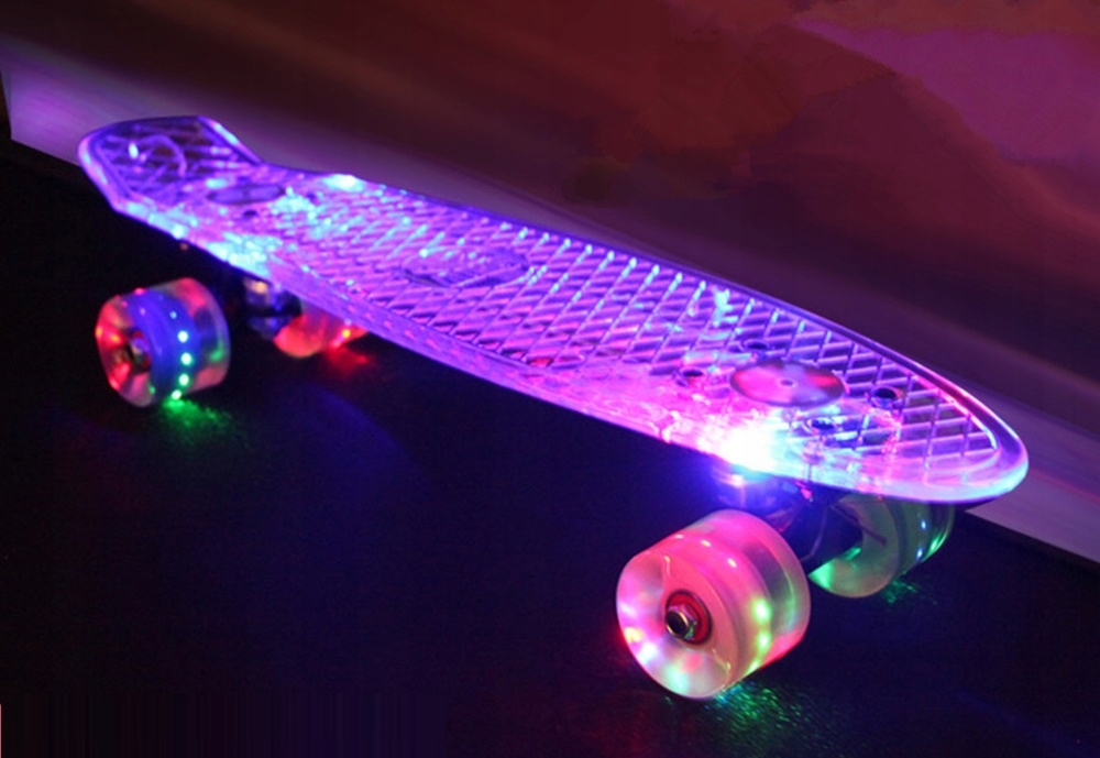 СКЕЙБОРД СО СВЕТОДИОДНОЙ ПОДСВЕТКОЙ RGB + СВЕТОДИОДНЫЕ КОЛЕСА - обеспечивает плавное и стабильное катание