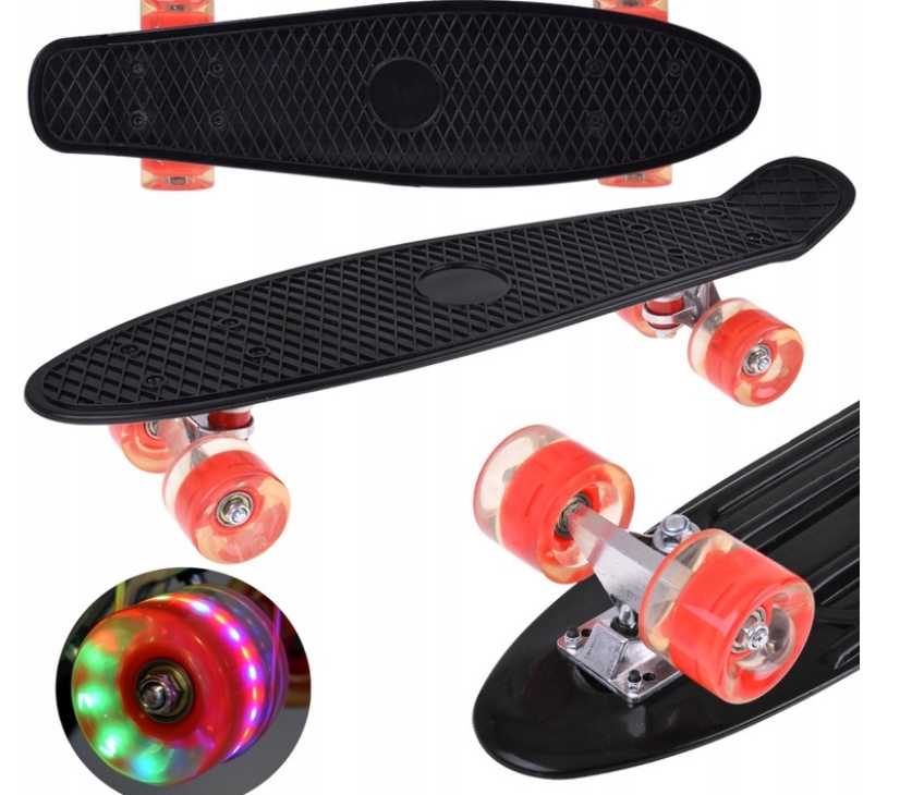 - Мягкие и тихие светодиодные колеса из полиуретана — идеально подходят для езды по городу, обеспечивают плавность хода и хорошую амортизацию. Загораются во время движения.