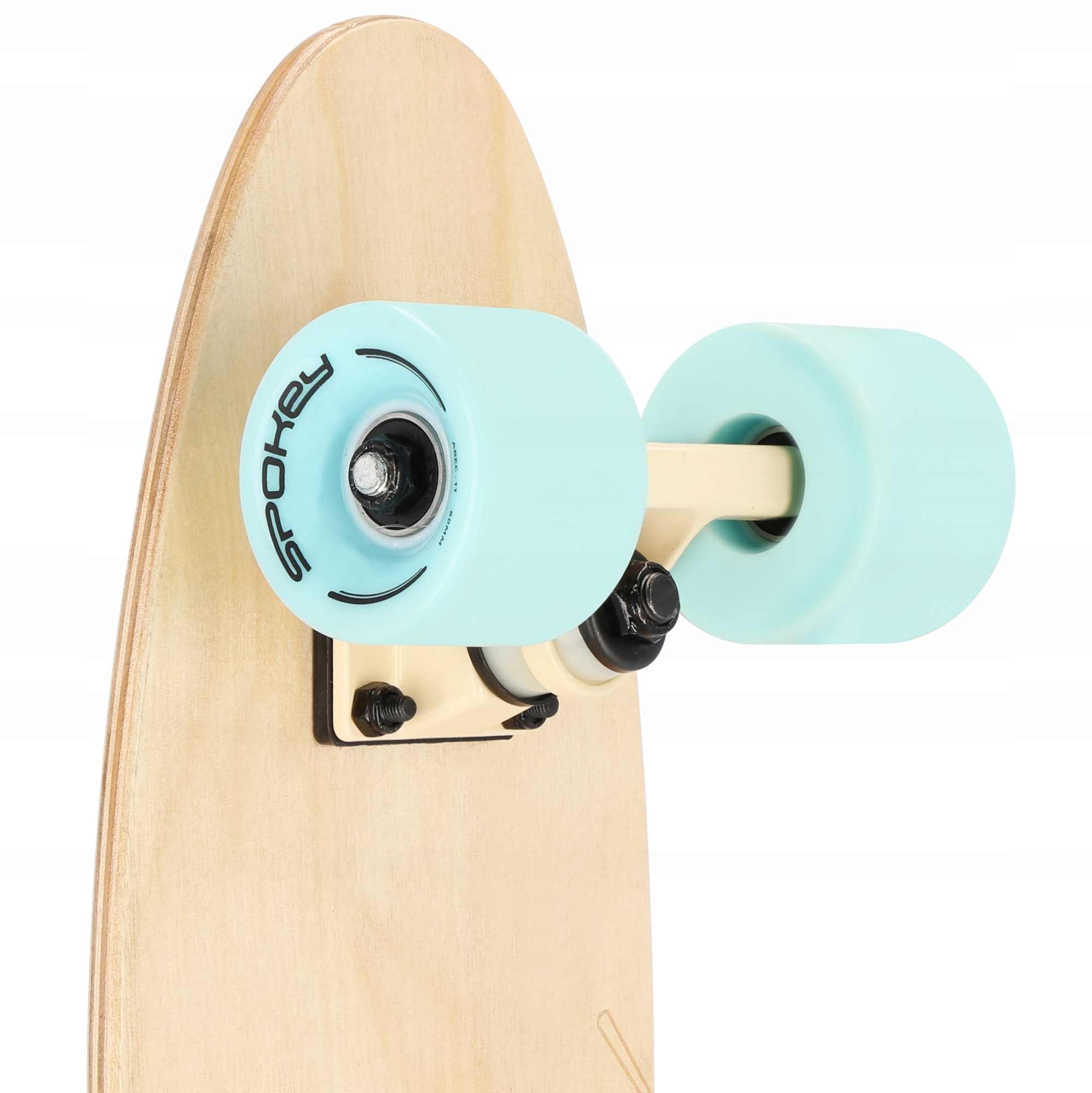 Пенни или фиш, как еще называют скейтборды-круизеры, поместятся в любой рюкзак. Ничто не мешает вам взять его с собой в отпуск, поездку на выходные или вечеринку с друзьями. Благодаря пенни-скейтборду Spokey WOO-FISH вы забудете об изношенных колесах и сломанных досках. Он изготовлен из канадского клена — самой прочной и гибкой древесины, используемой для производства скейтбордов. Дека имеет специальное нескользящее покрытие, прозрачную ленту для захвата, что помогает сохранять устойчивое положение и лучший баланс, что улучшает качество движения и облегчает управление доской при различных маневрах! Кроме того, большой размер колес и более низкая тележка Spokey WOO-FISH влияют на гибкость, маневренность и обеспечивают большую свободу при прохождении поворотов.