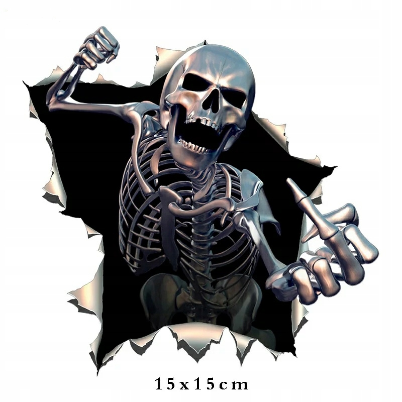Предмет продажи — новая качественная наклейка с изображением металлического скелета с вытянутым «средним пальцем»!
