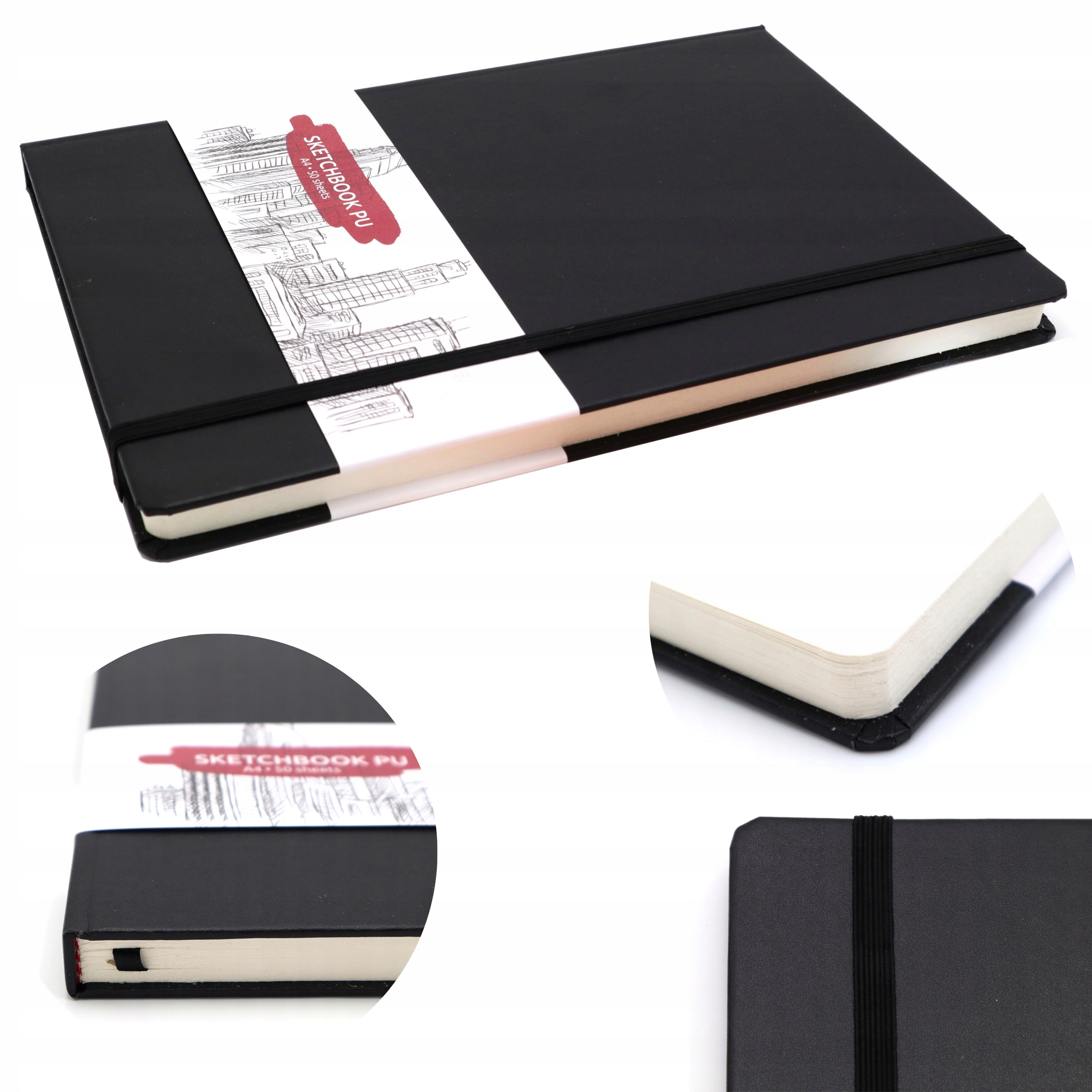 Альбом для рисования имеет застежку с черным эластичным ластиком, поэтому вы можете свободно складывать листы бумаги без риска выпадения. Дополнительная черная лента позволяет отметить выбранную страницу.