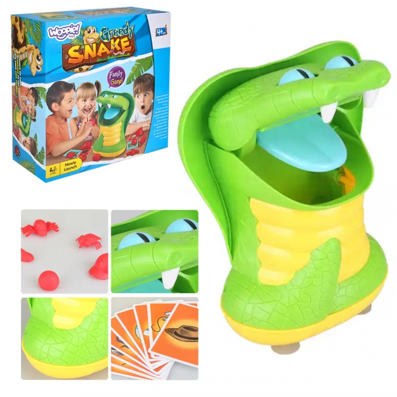 Вам следует открыть пасть змеи и поместить в ее брюшко предметы, которые вы нарисуете. Каждый игрок по очереди тянет карточку с предметом. Теперь все, что вам нужно сделать, это вынуть нарисованный предмет изо рта. Помните, что это змея, которая может укусить в любой момент. Он очень голоден, поэтому не сможет долго держать рот открытым. Побеждает тот, кто вытащит выпавшие предметы, не будучи укушенным. Змея очень голодна и злится во время игры, если игрок будет долго искать предмет во рту, она зажмет его и игрок проиграет.
