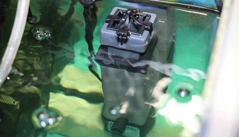 Скиммер можно использовать как в резервуарах с пресной, так и с морской водой. Он приводится в действие насосом производительностью 300л/ч, а благодаря выпускному отверстию с возможностью регулирования направления струи воды может работать и как циркуляционный насос.
