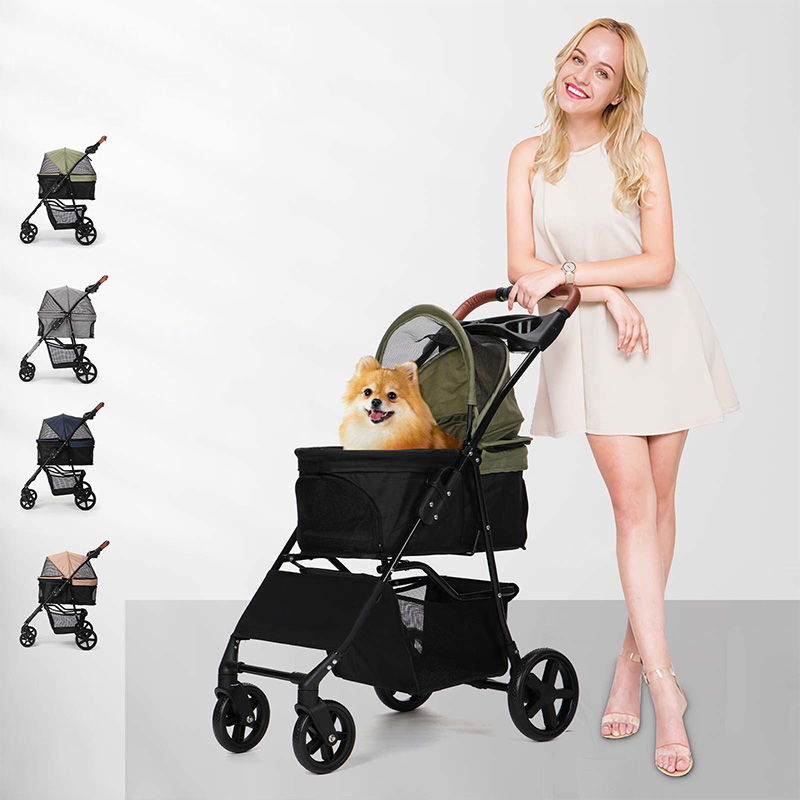 【Прочный и долговечный】Коляска изготовлена из алюминиевой рамы, прочной и легкой. Ткань изготовлена из высококачественного материала Oxford 600D, который предотвращает появление когтей и укусов. Наша коляска для собак оснащена улучшенной версией функции одноногого тормоза. Коляску для собаки можно остановить, нажав на тормоз одной ногой!