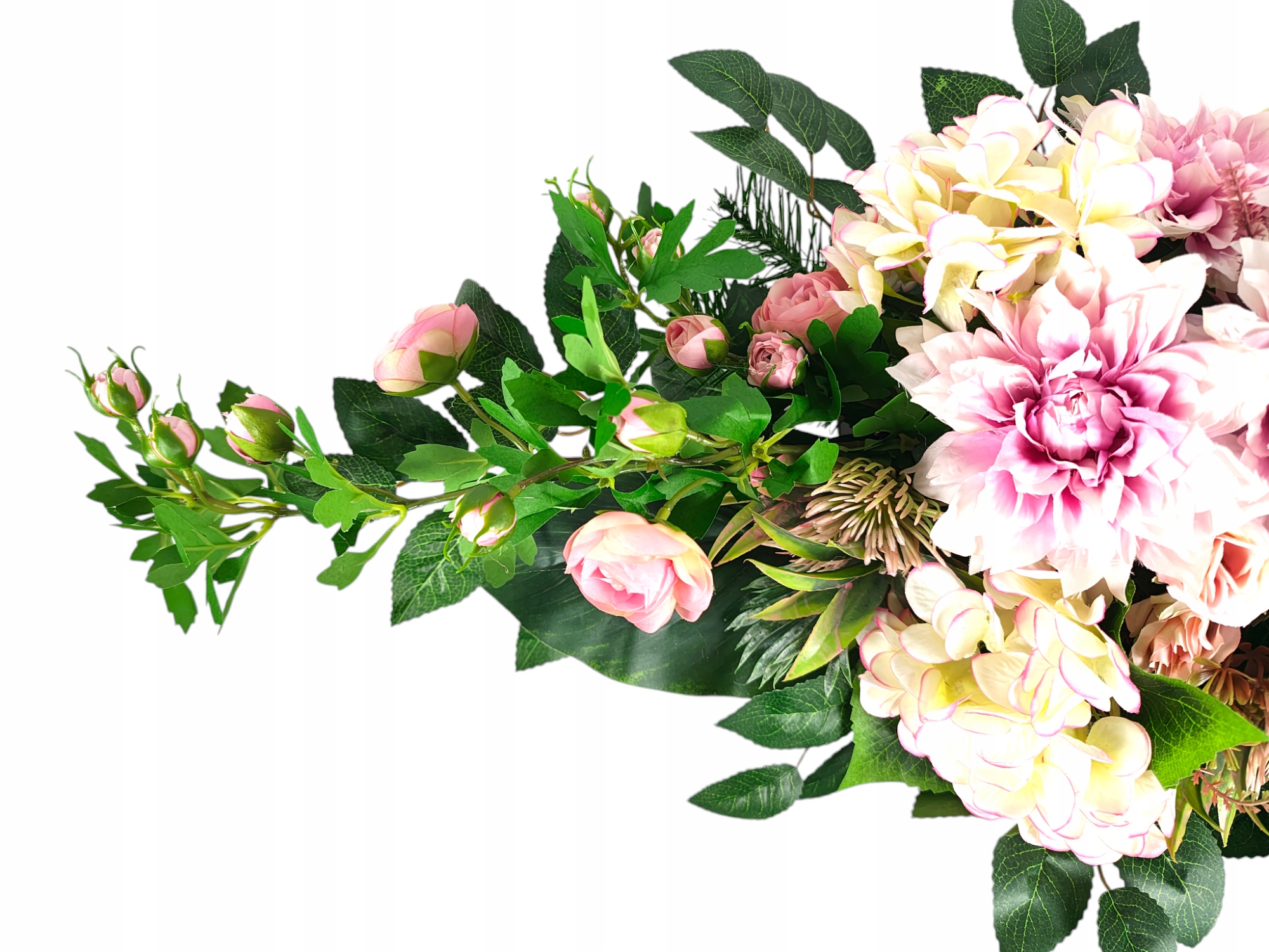 Мы представляем уникальный набор надгробных украшений 2-в-1, который сочетает в себе классическую элегантность и долговечность, обеспечение красивого и достойного украшения места отдыха близких. Набор состоит из двух идеально сочетающихся друг с другом элементов: эффектного букета и стильной вставки в вазу. Обе композиции созданы из искусственных цветов высочайшего качества, реалистичная форма которых напоминает живые цветы, дополнительно подчеркнутые зелеными листьями.