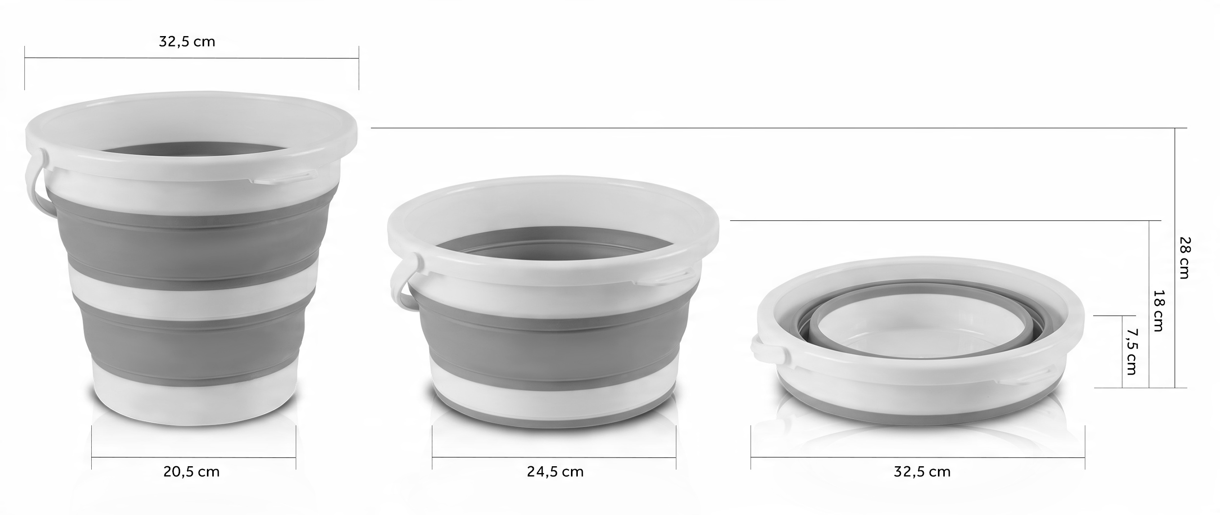 ✅ Складное ведро занимает мало места и идеально подходит для небольших помещений, таких как квартиры, кемперы или палатки.
